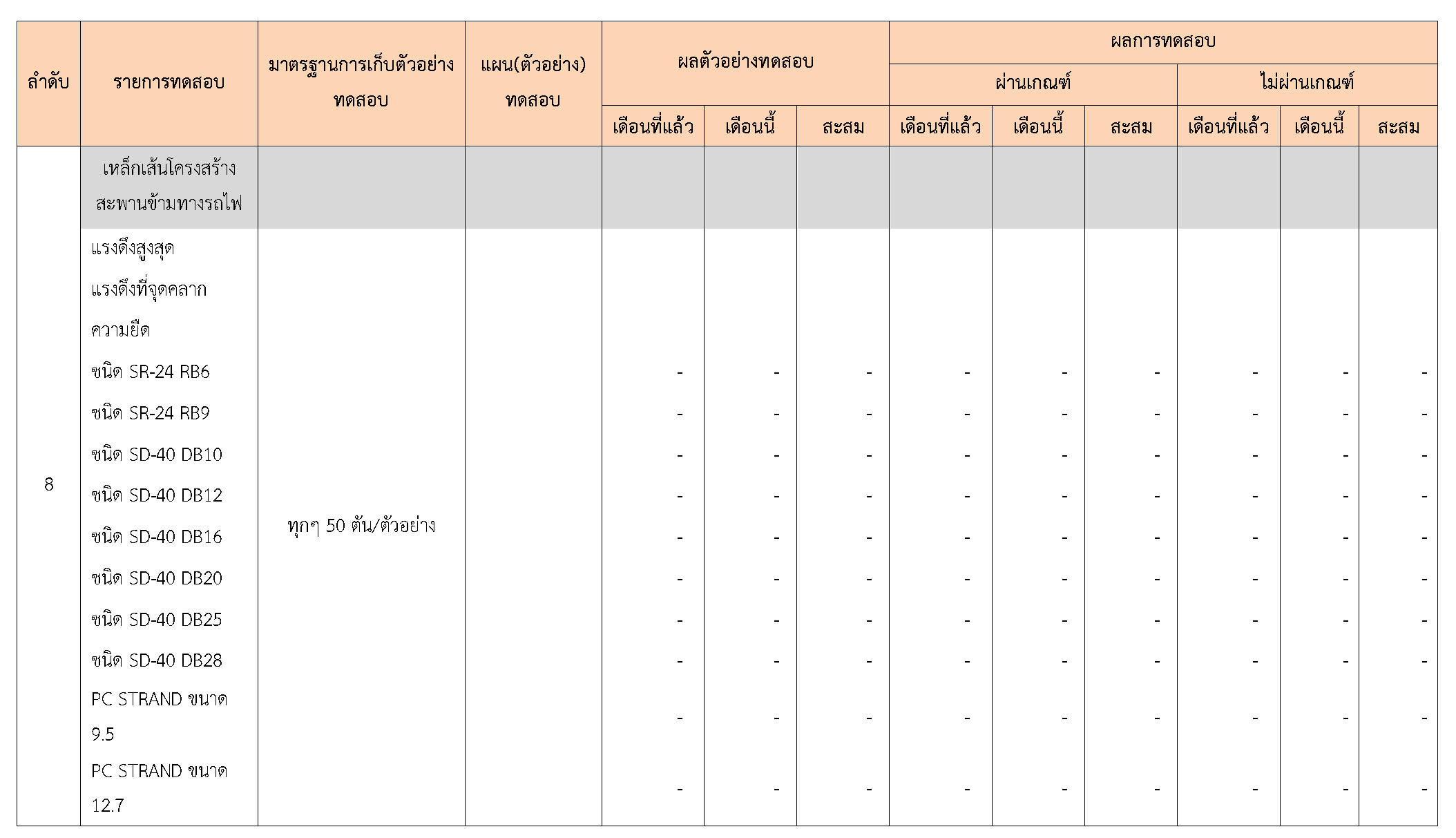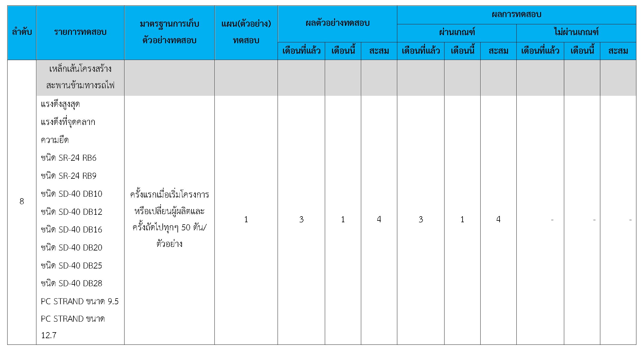 ในระหว่างวันที่ 1-30 มิถุนายน2561ผู้ว่าจ้างได้เสนอหนังสือขออนุมัติใช้วัสดุถึงที่ปรึกษา โดยที่ปรึกษาได้ตรวจสอบวัสดุดังกล่าวมีผลทดสอบดังตาราง