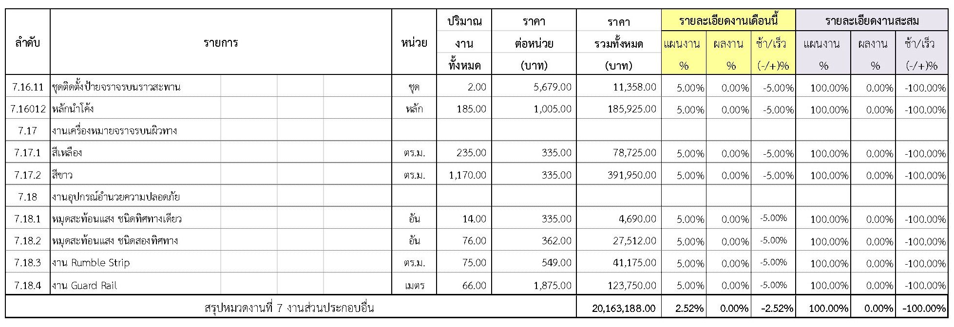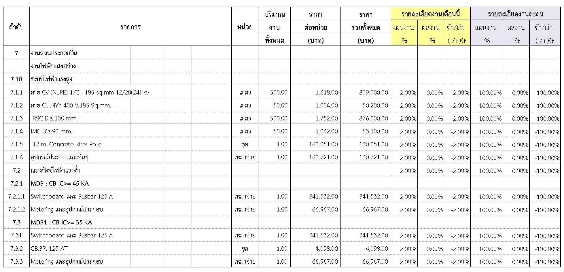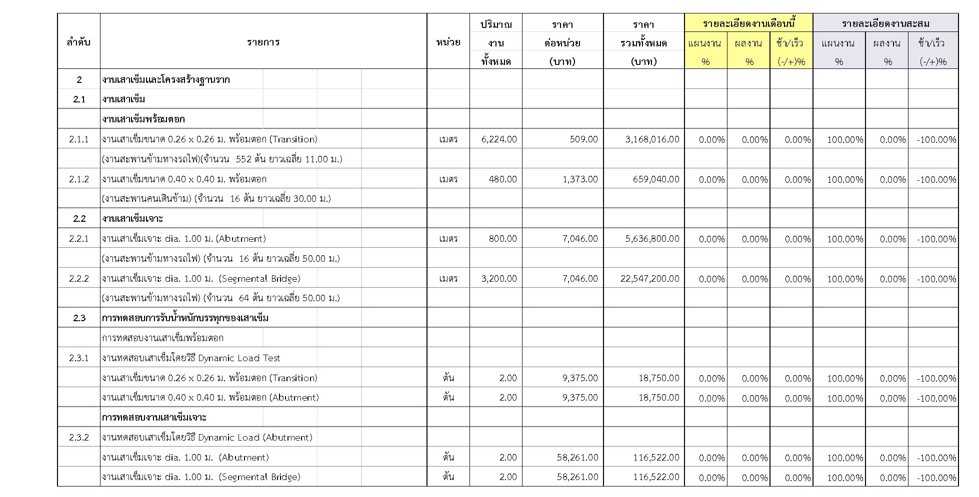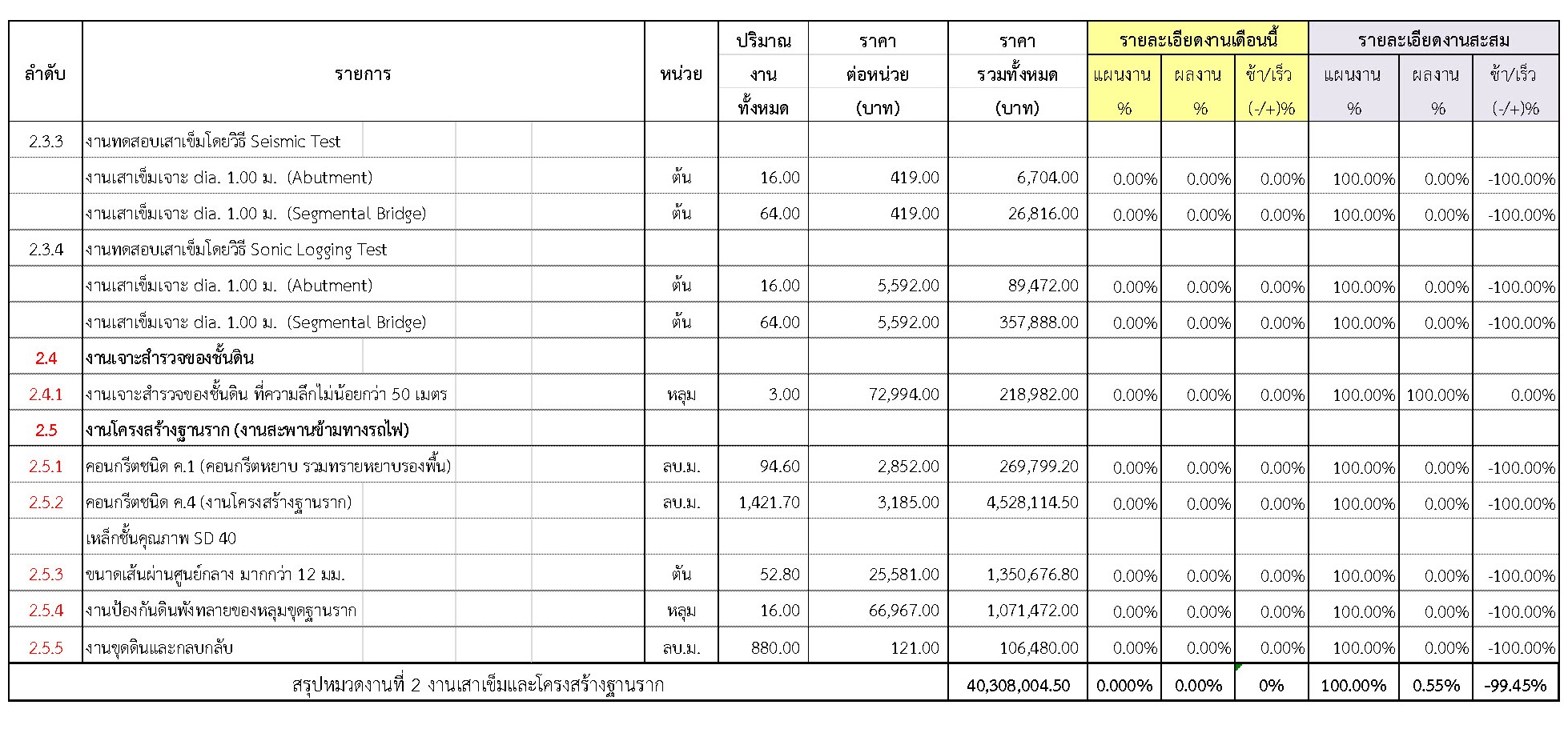 2.2 ความก้าวหน้าของงานก่อสร้างแยกตามรายการ