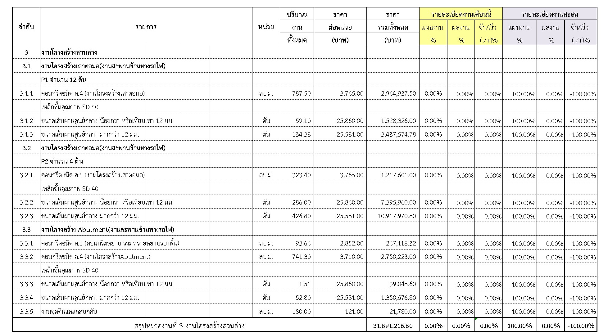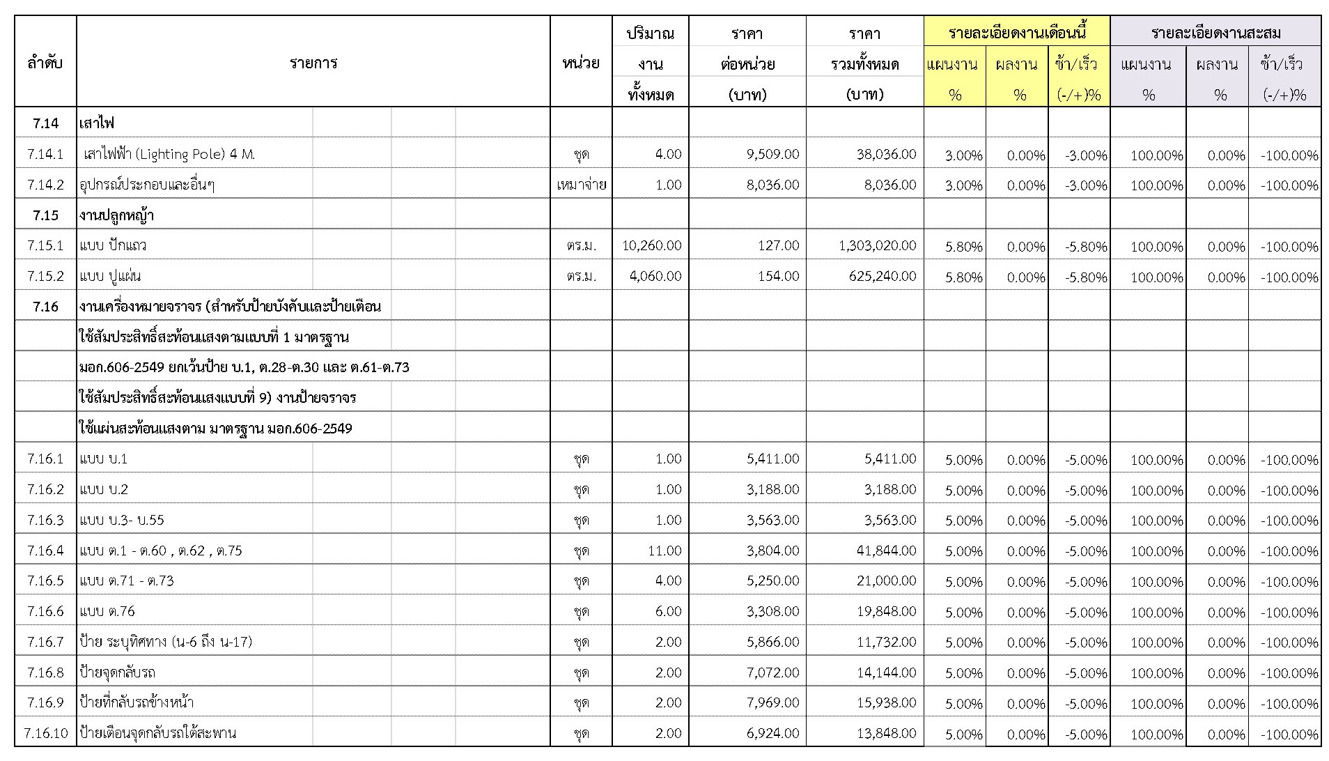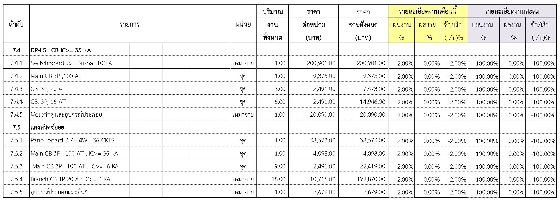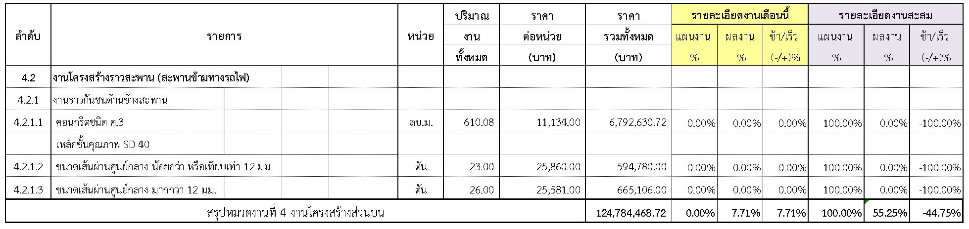 2.2 ความก้าวหน้าของงานก่อสร้างแยกตามรายการ