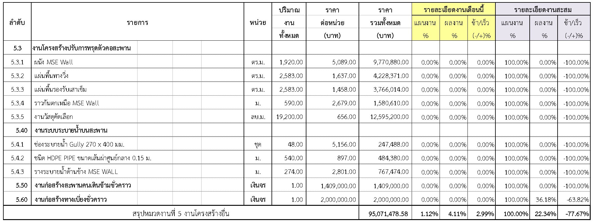 ในเดือน กรกฏาคม 2561มีความก้าวหน้าของงานก่อสร้างที่สามารถตรวจรับงานได้ ดังสรุปในตารางที่ 2.3-1