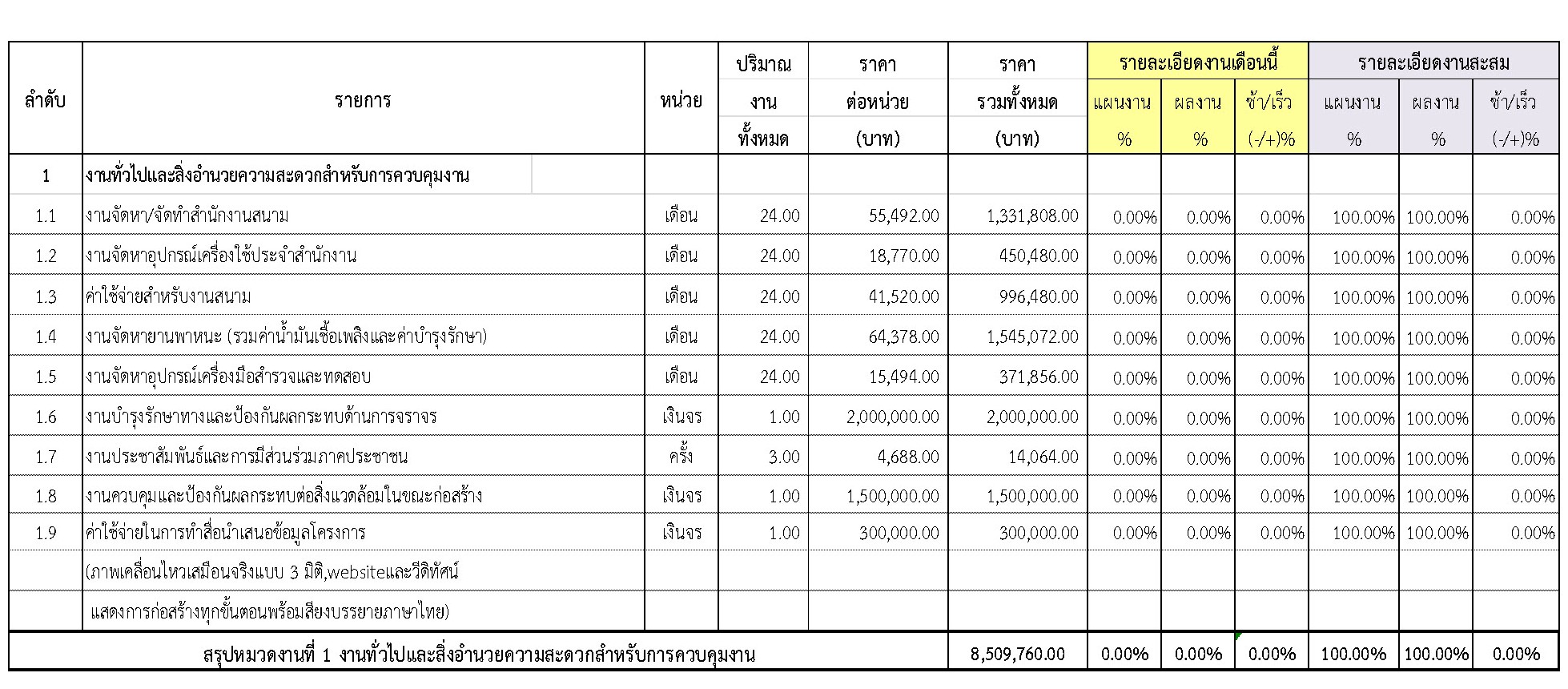 2.1 งานทั่วไปและสิ่งอำนวยความสะดวกสำหรับการควบคุมงาน