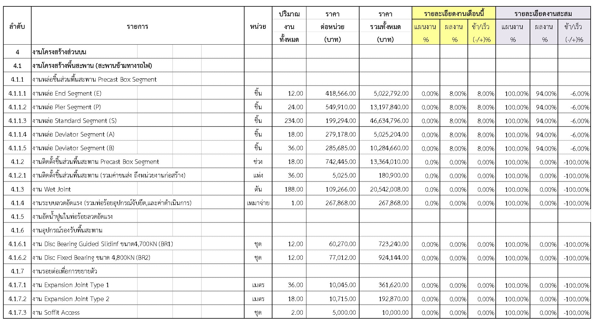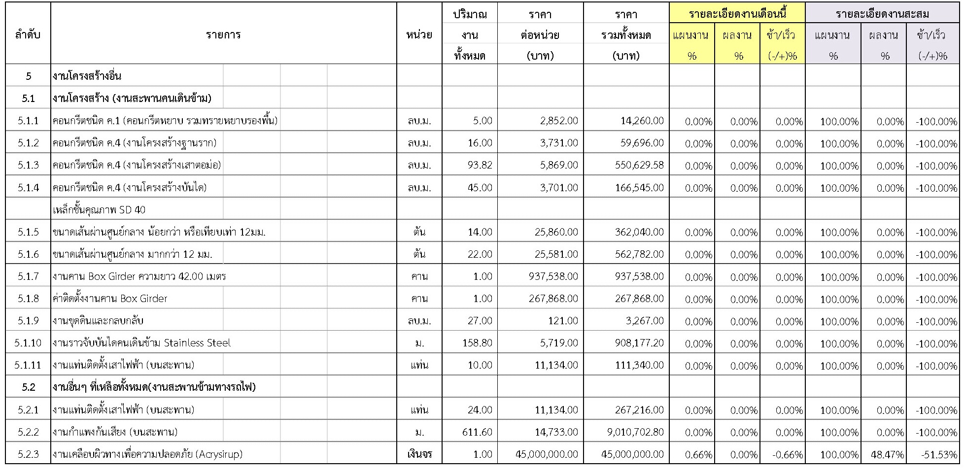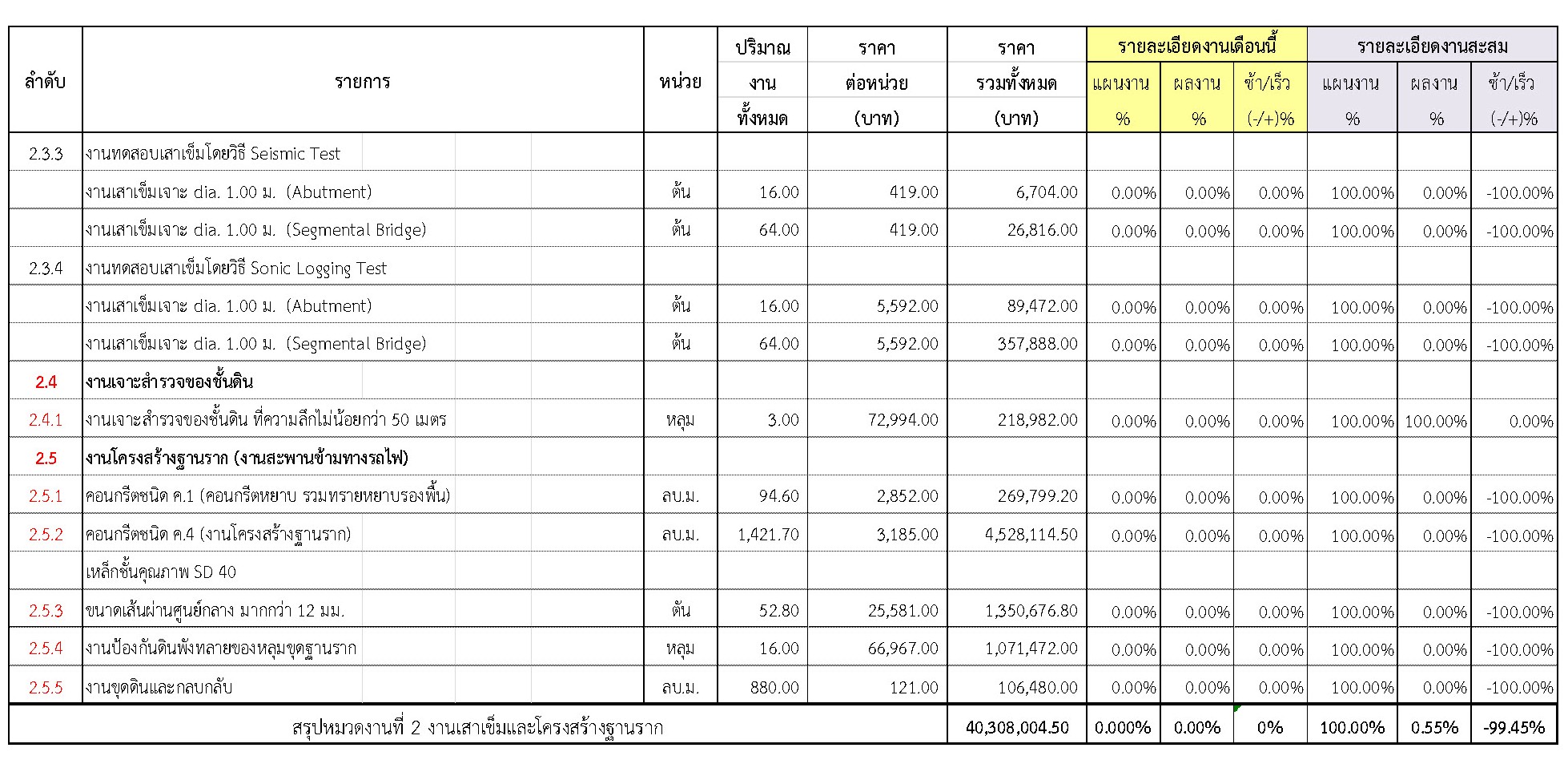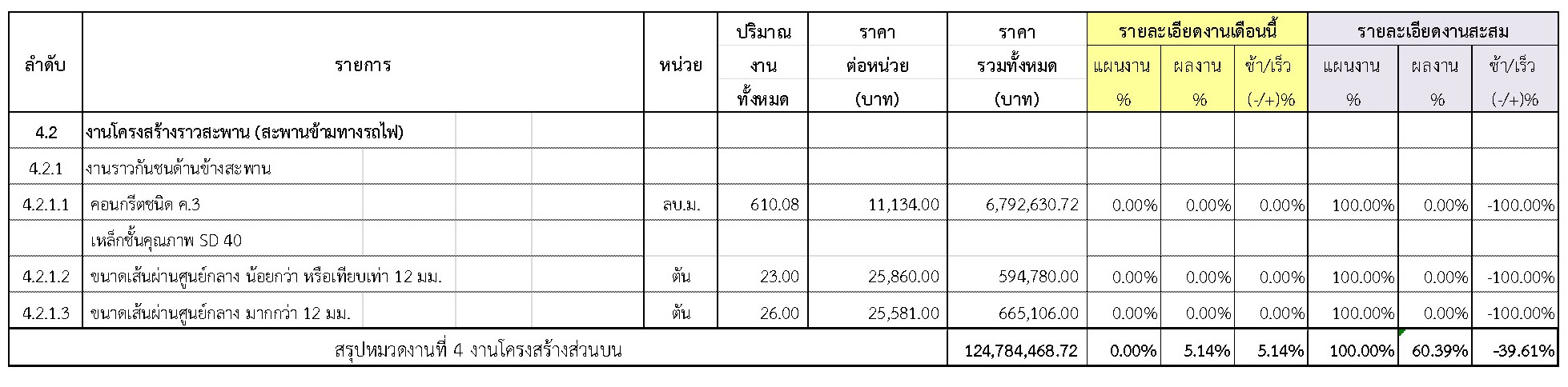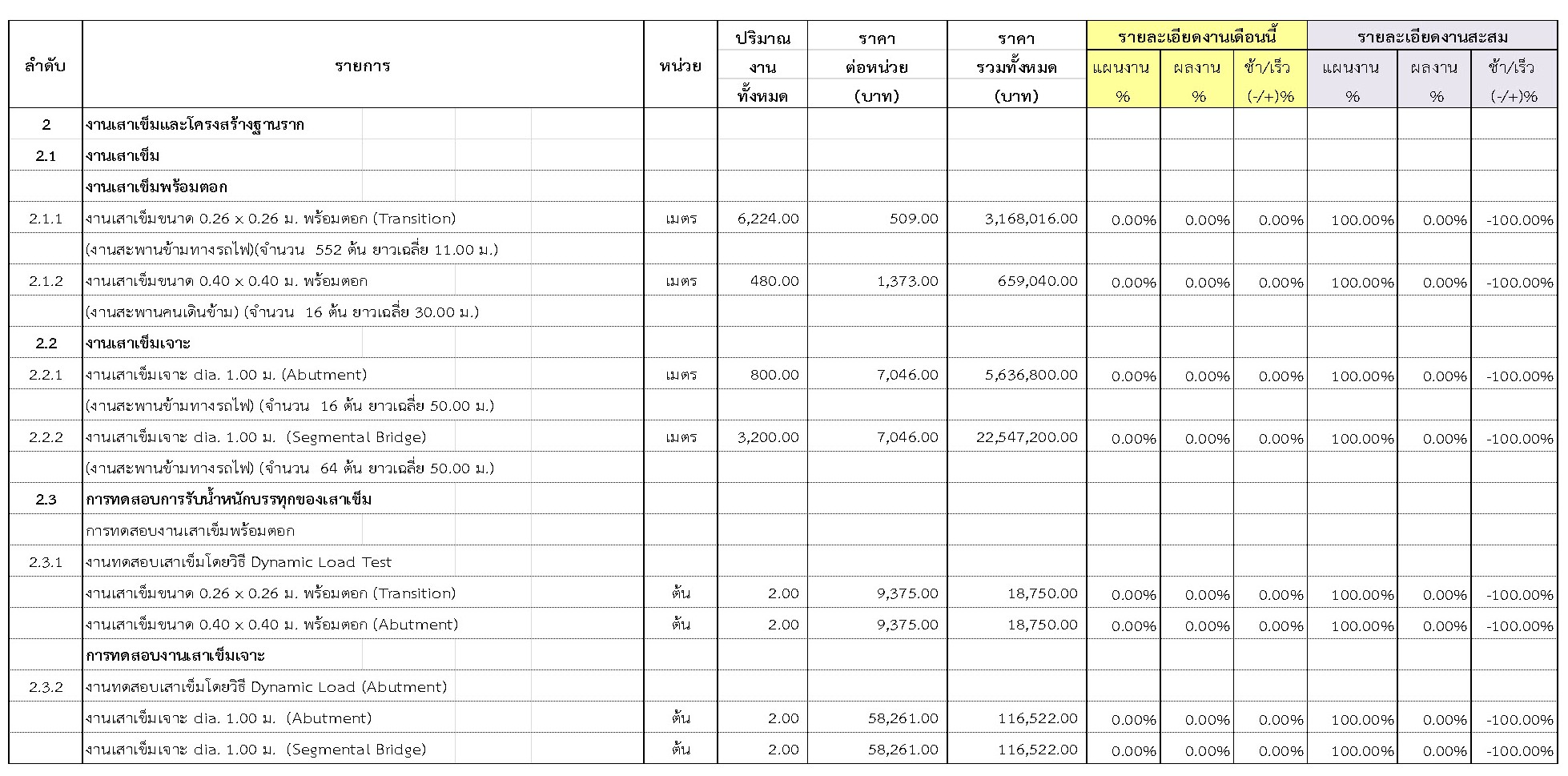 2.2 ความก้าวหน้าของงานก่อสร้างแยกตามรายการ