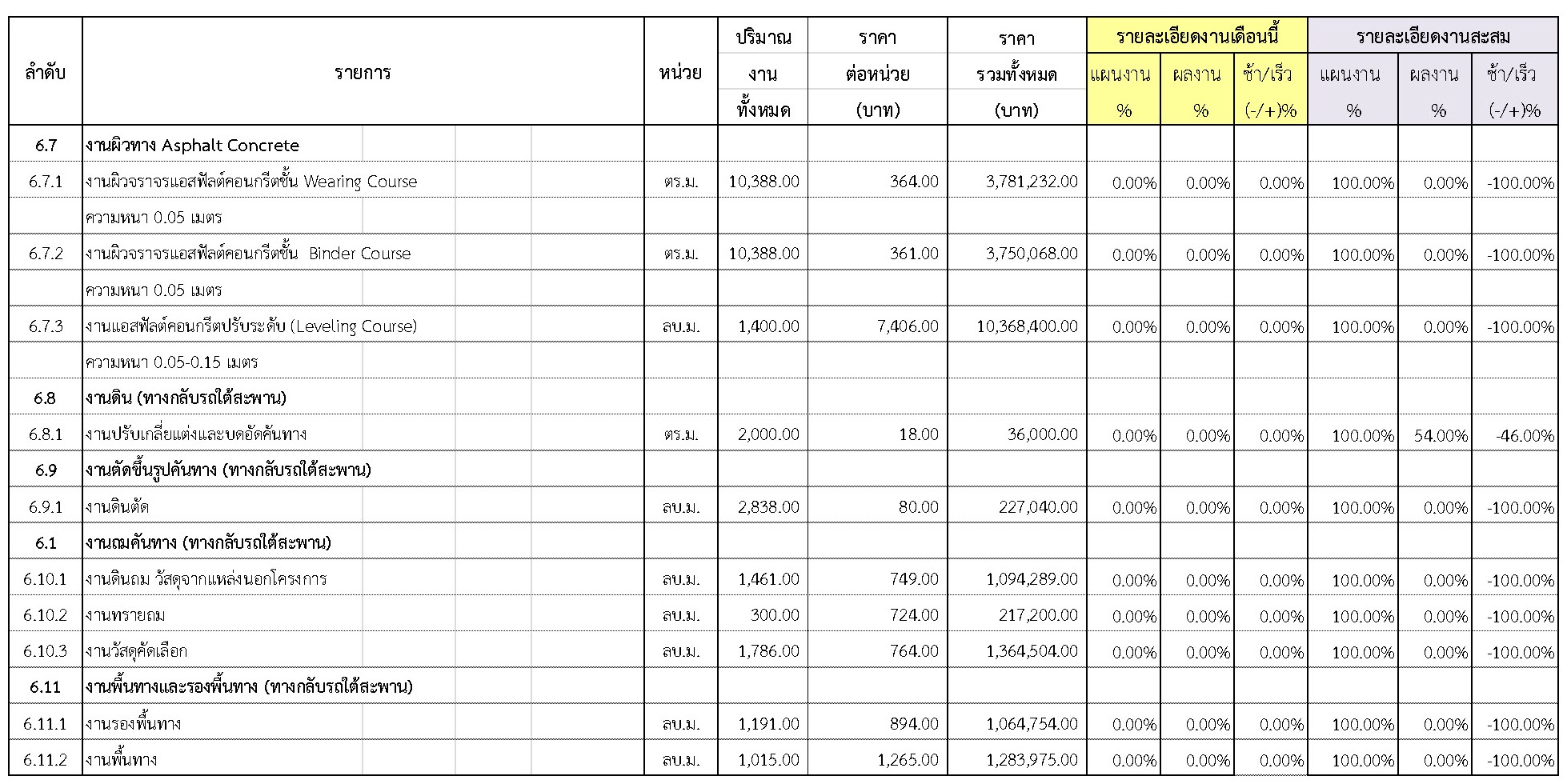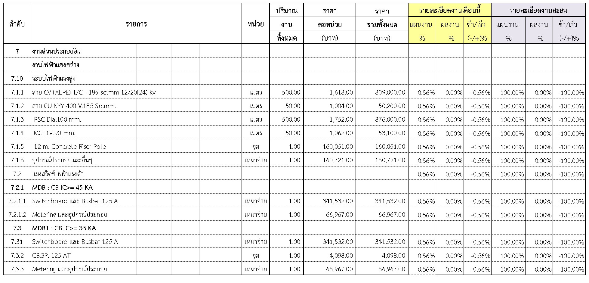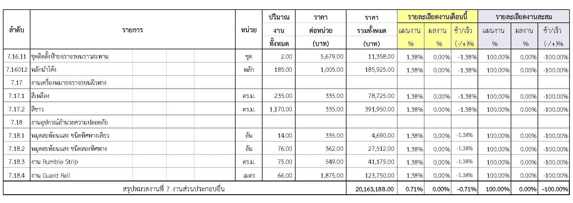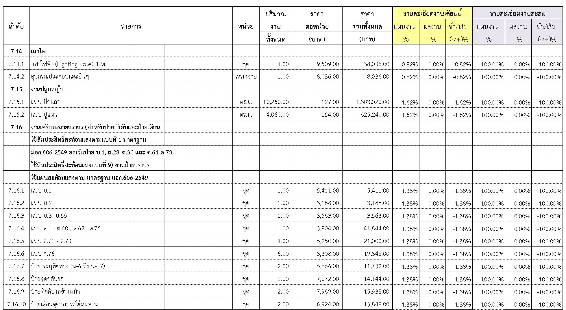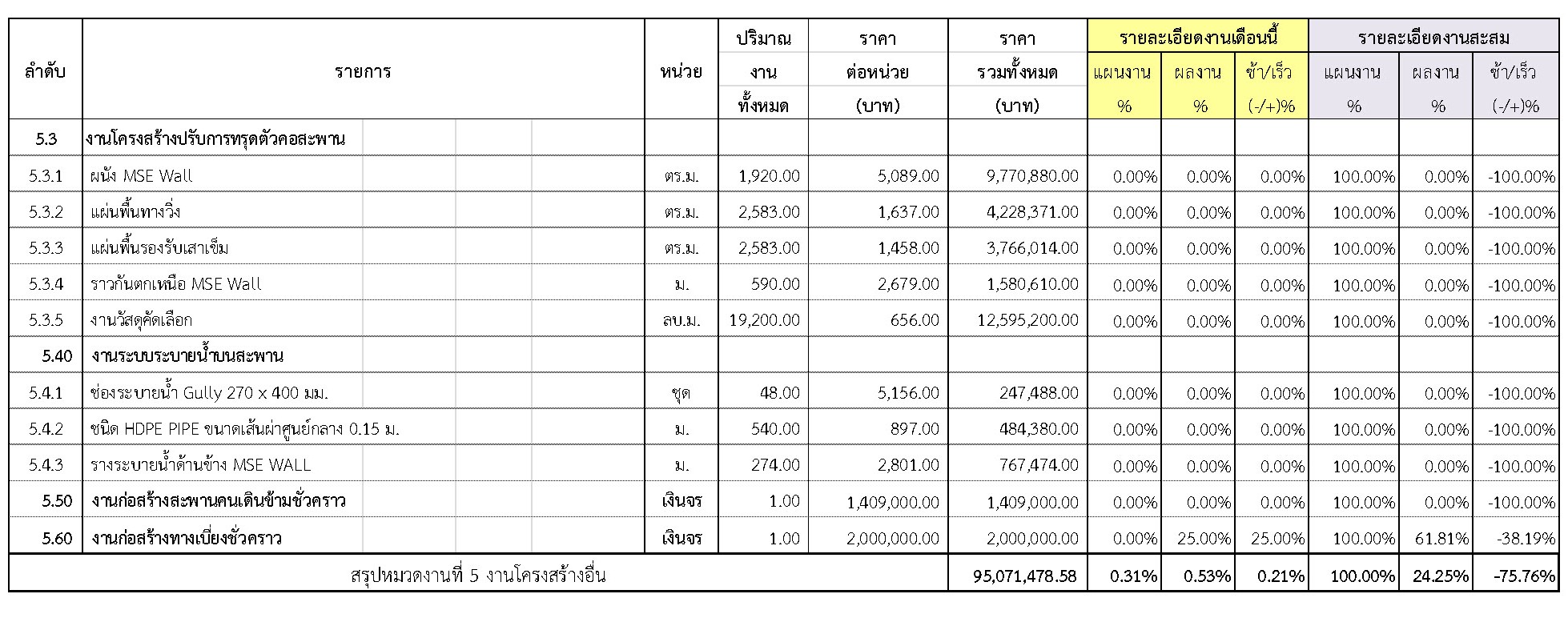 2.2 ความก้าวหน้าของงานก่อสร้างแยกตามรายการ