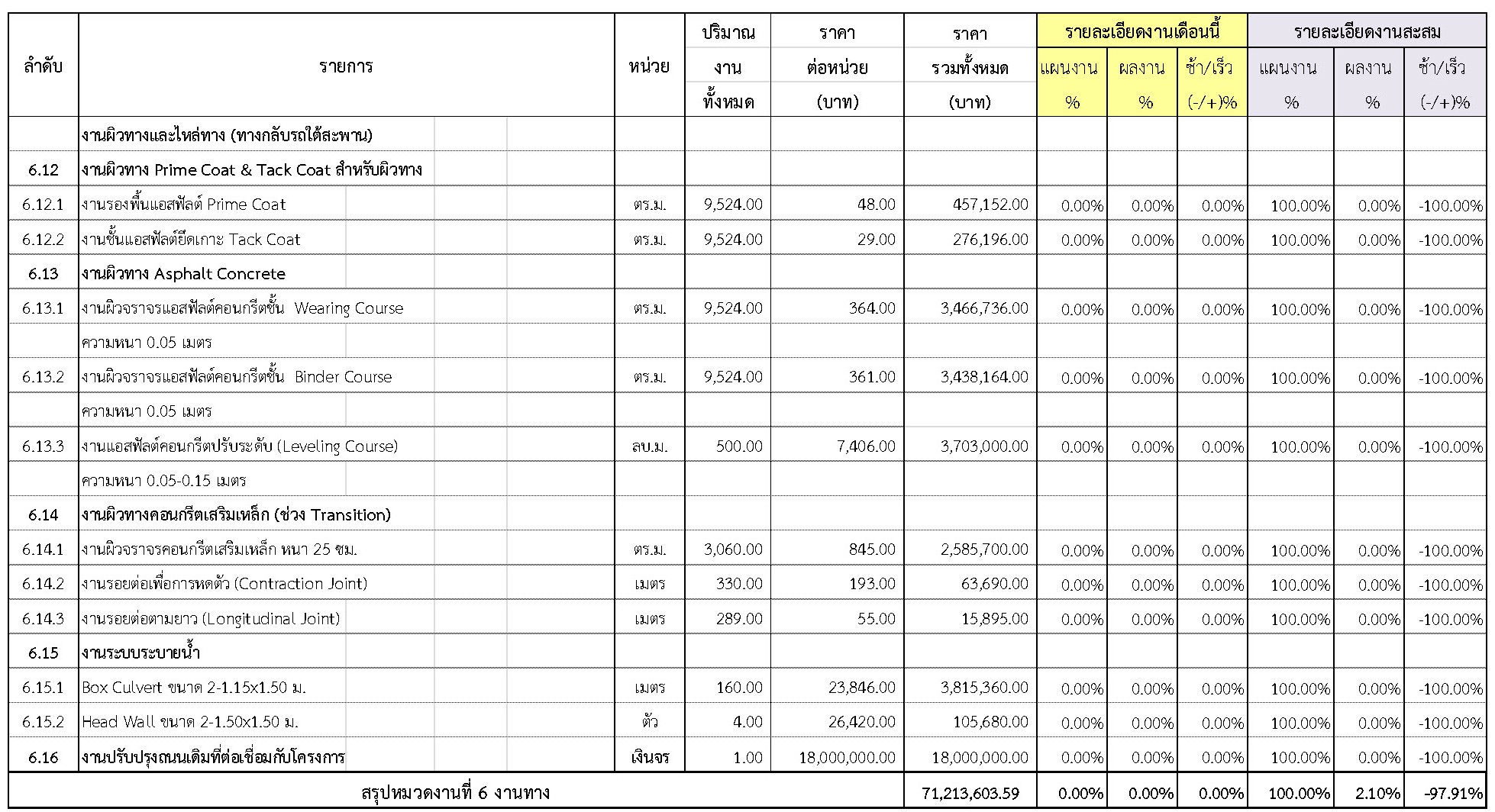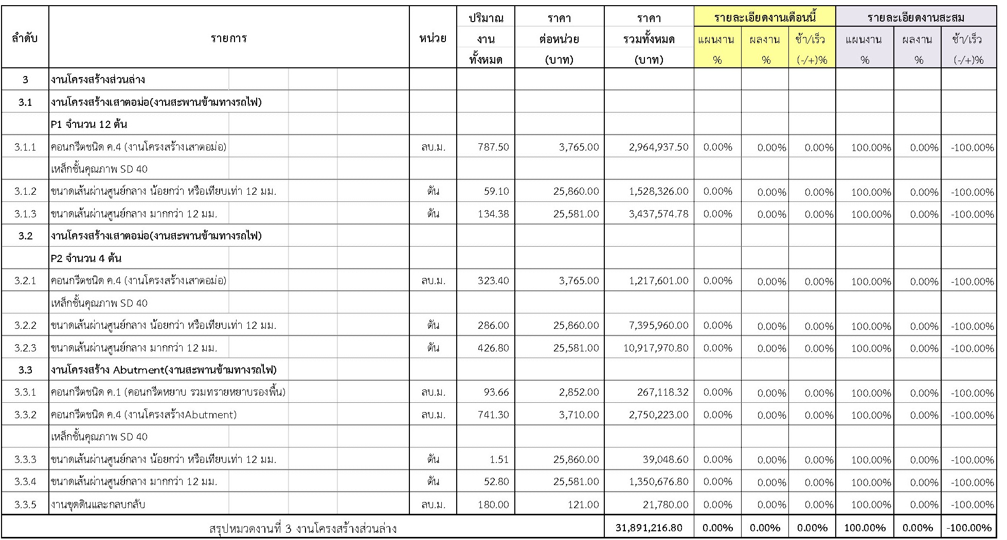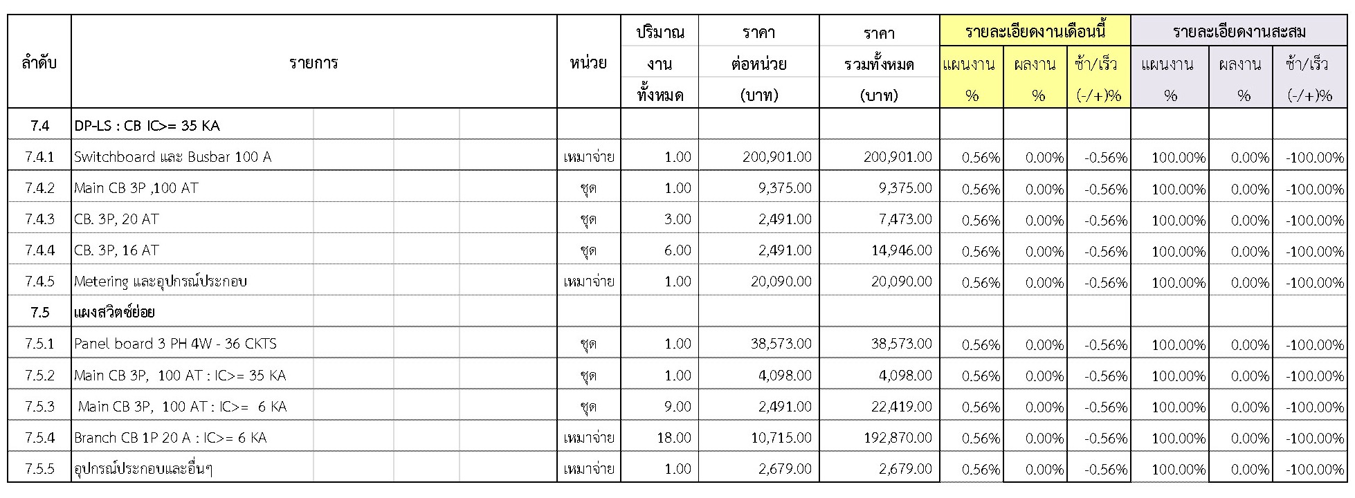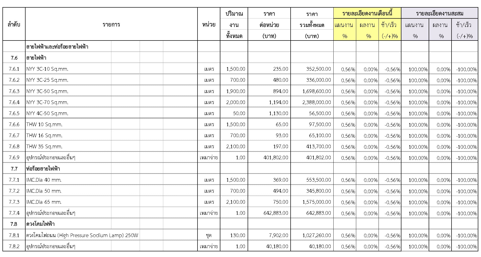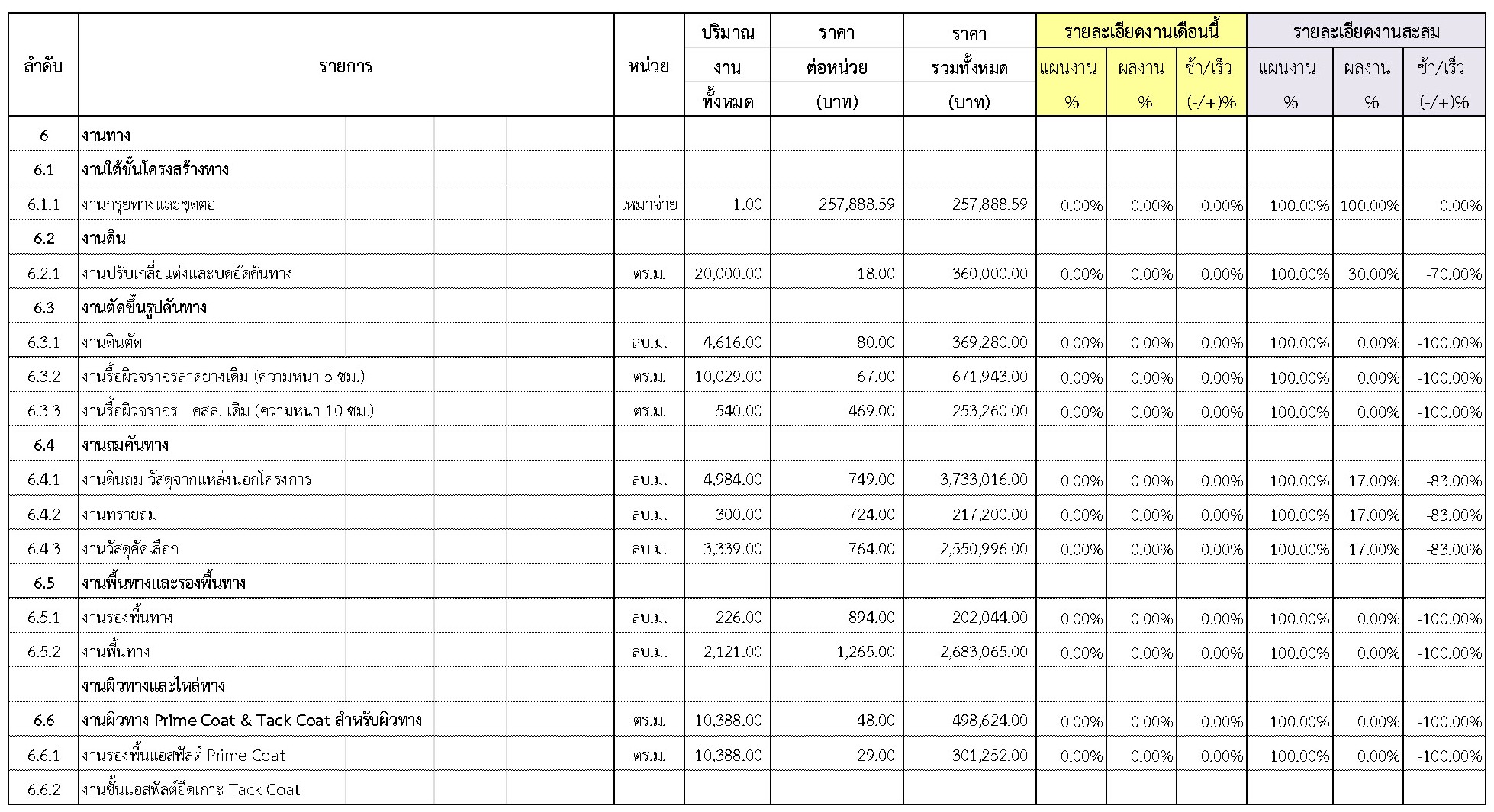 2.2 ความก้าวหน้าของงานก่อสร้างแยกตามรายการ