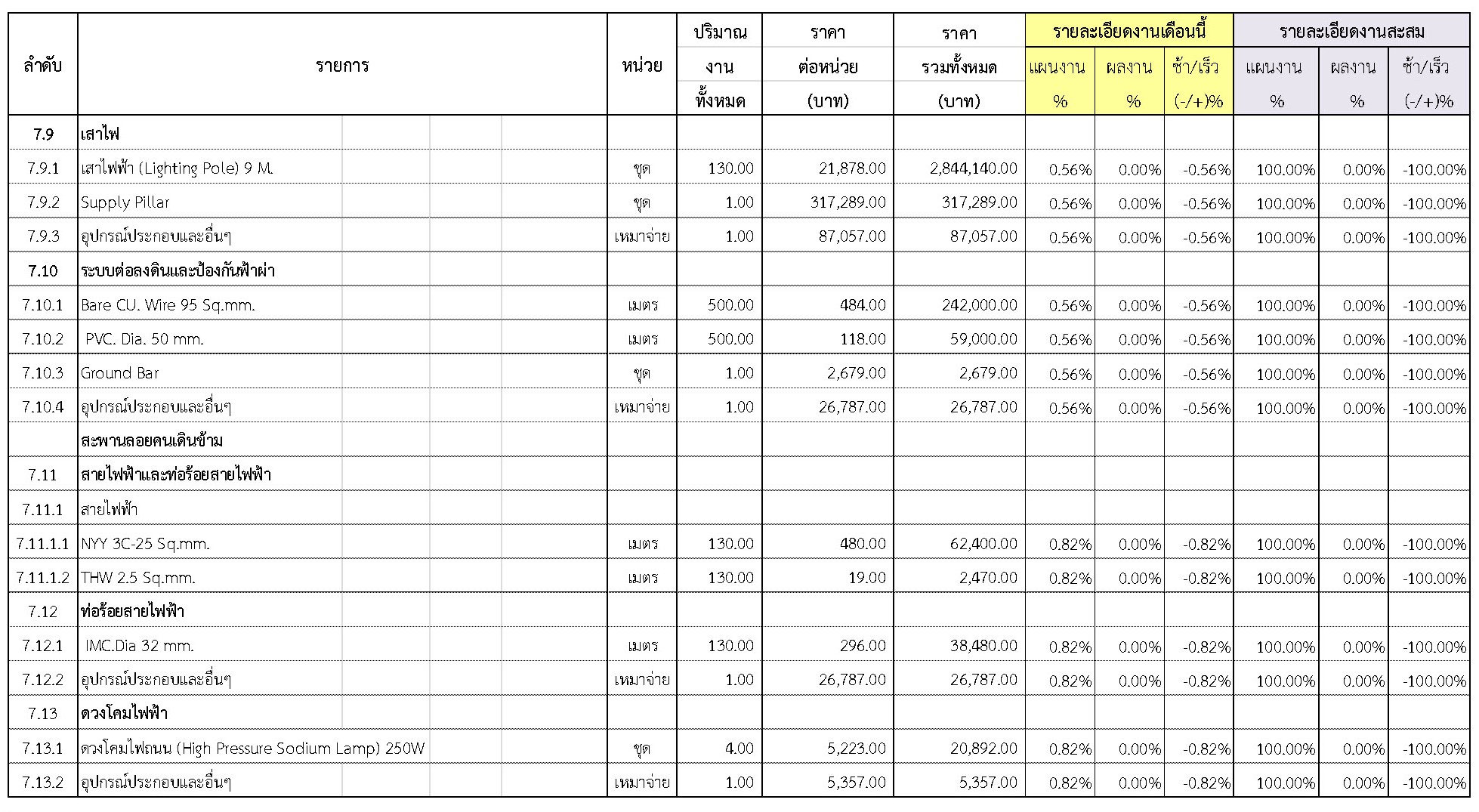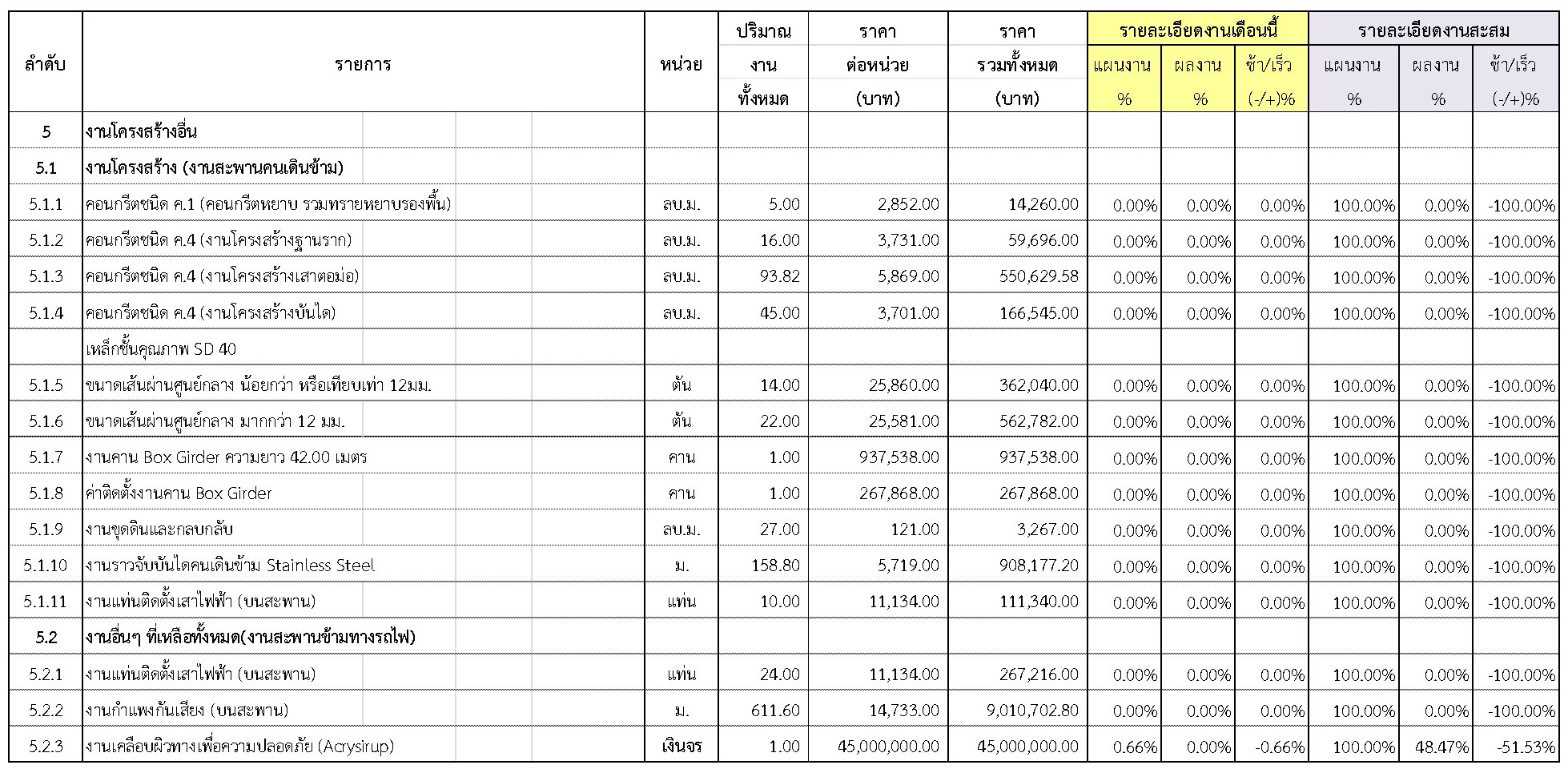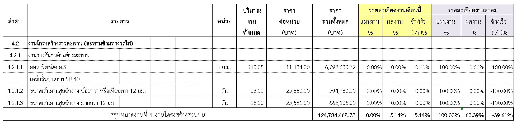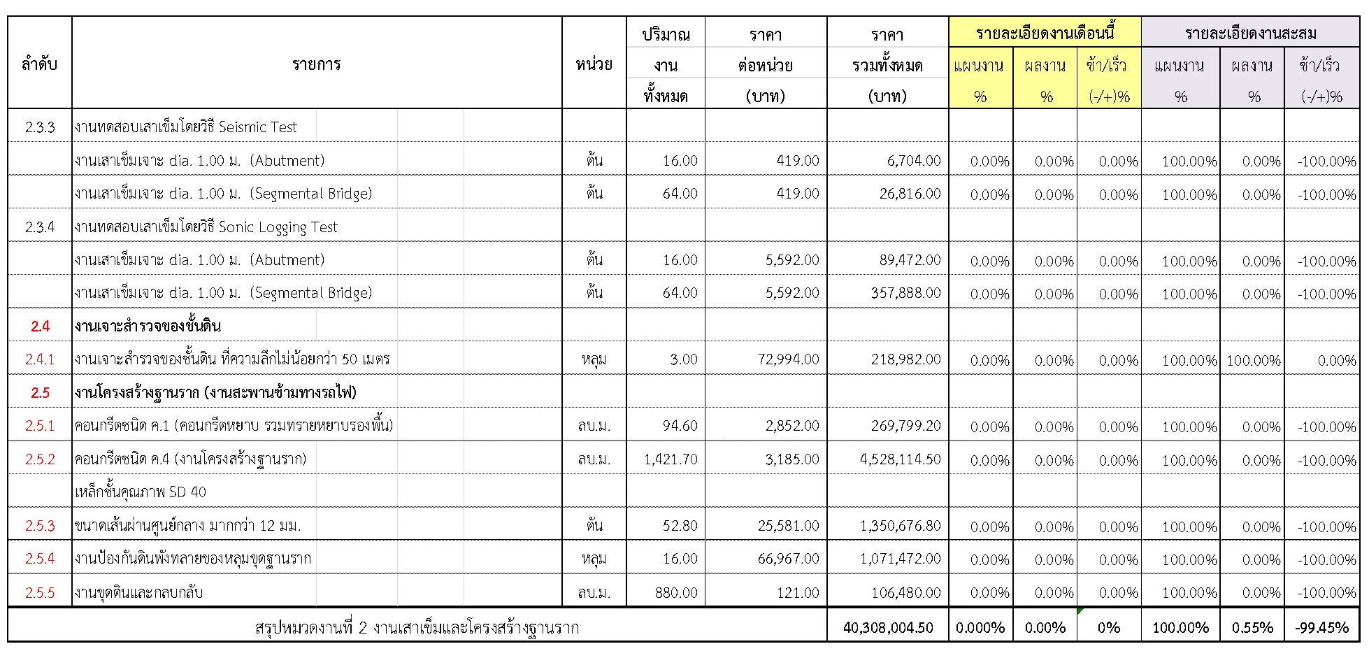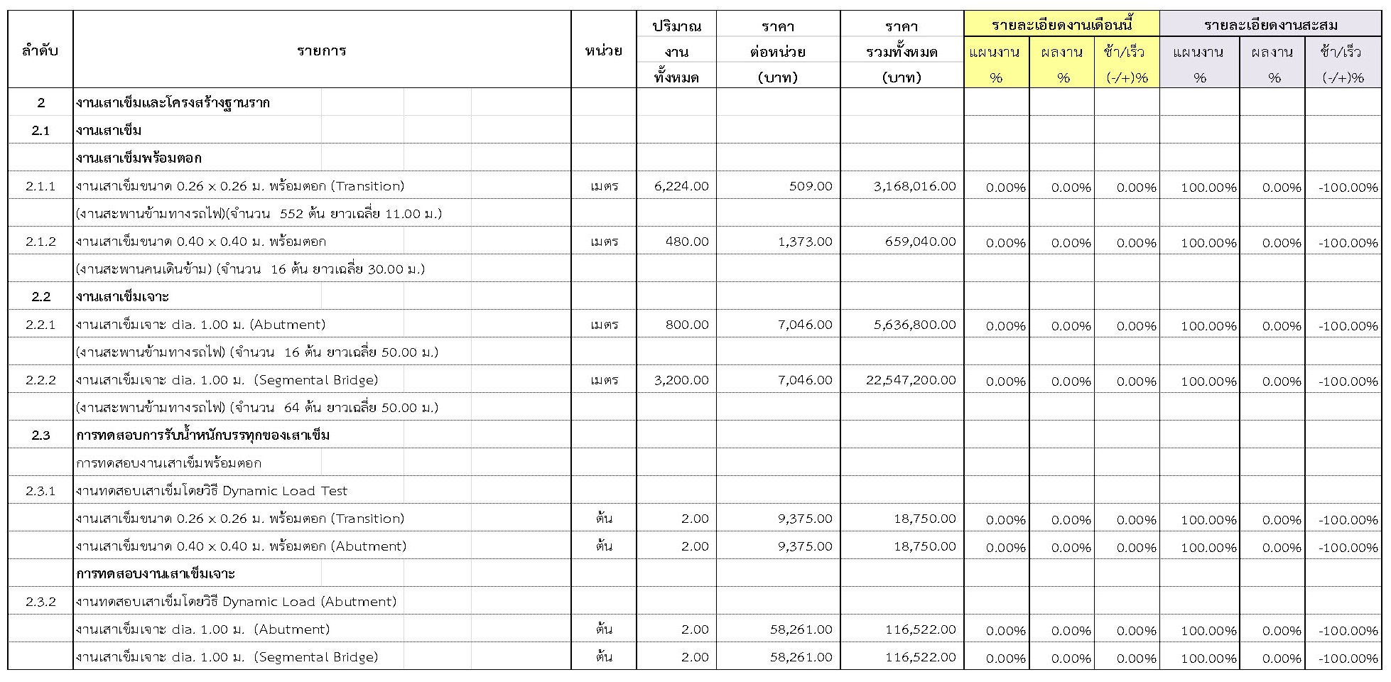 2.2 ความก้าวหน้าของงานก่อสร้างแยกตามรายการ