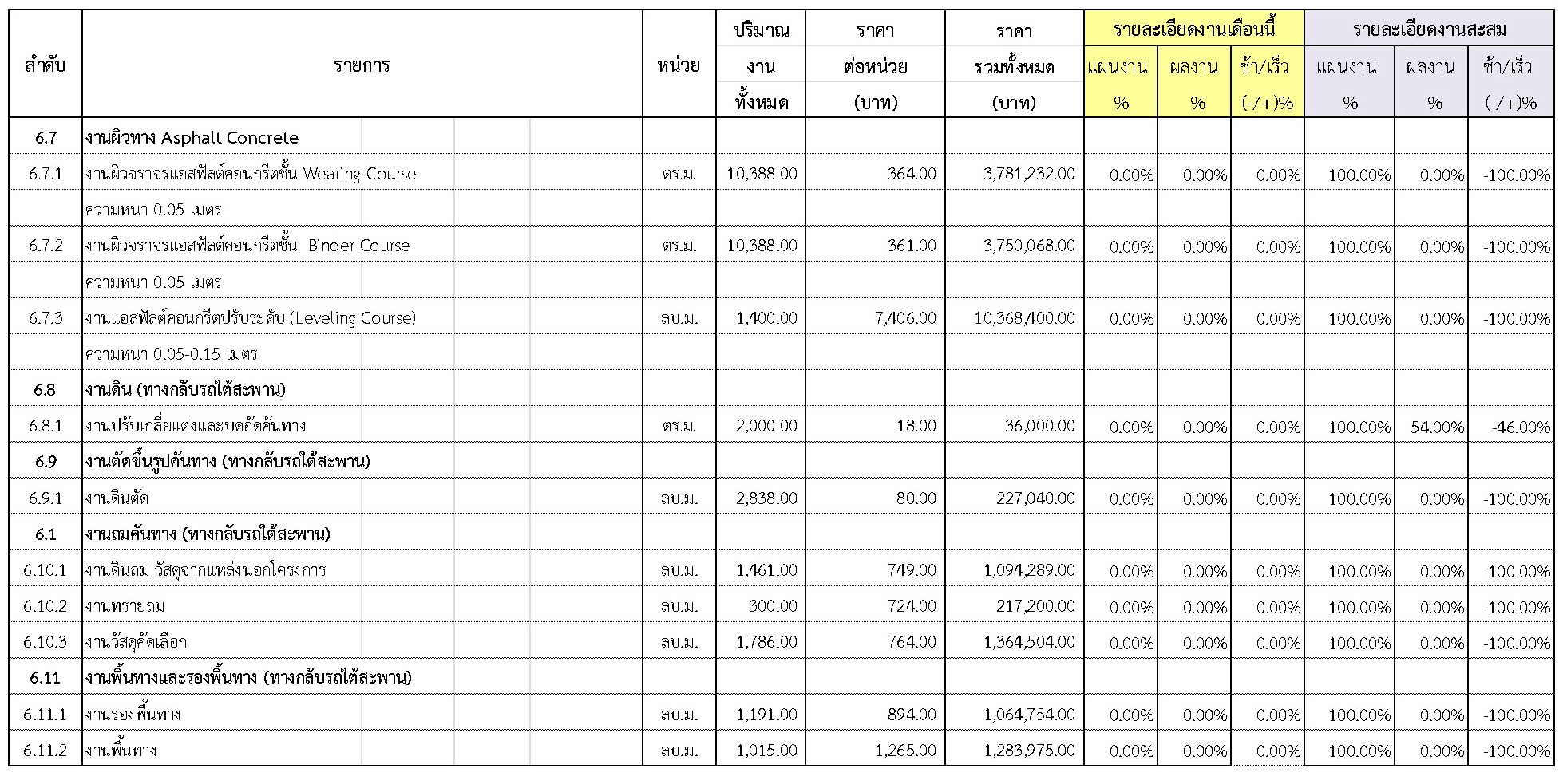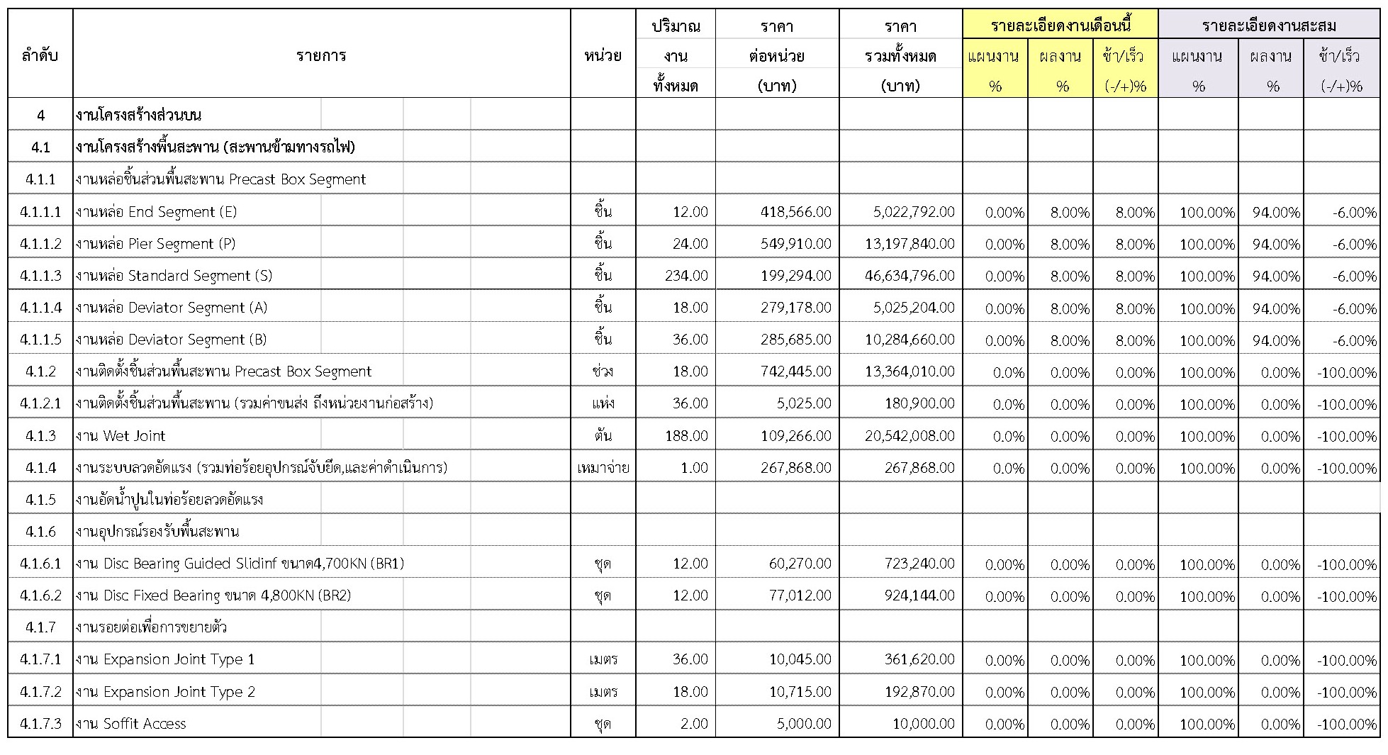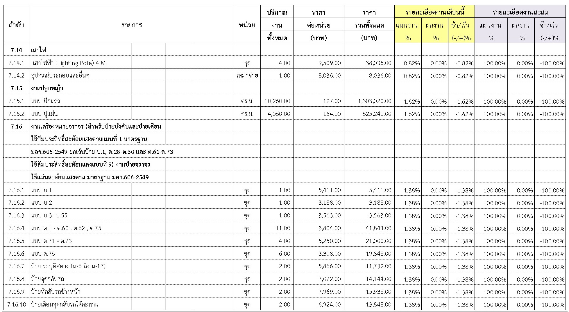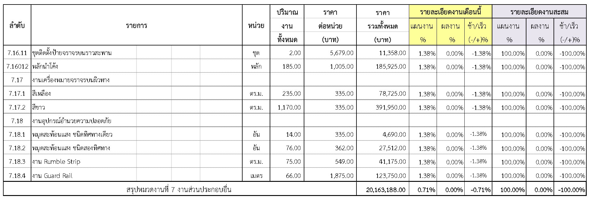 2.2 ความก้าวหน้าของงานก่อสร้างแยกตามรายการ