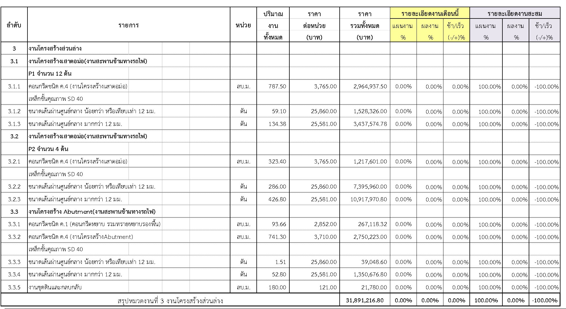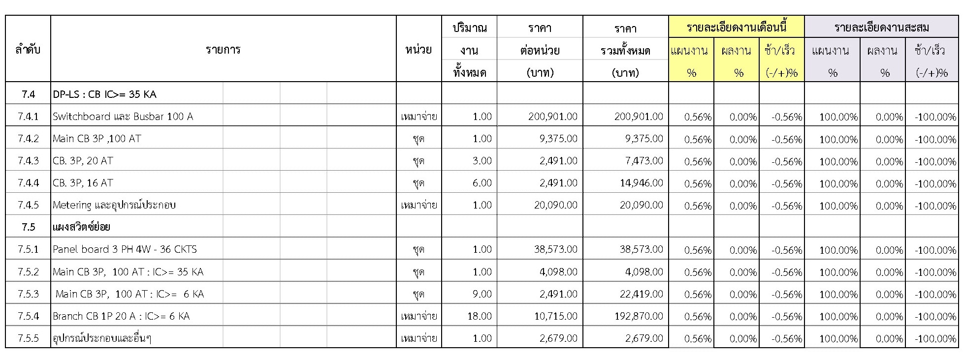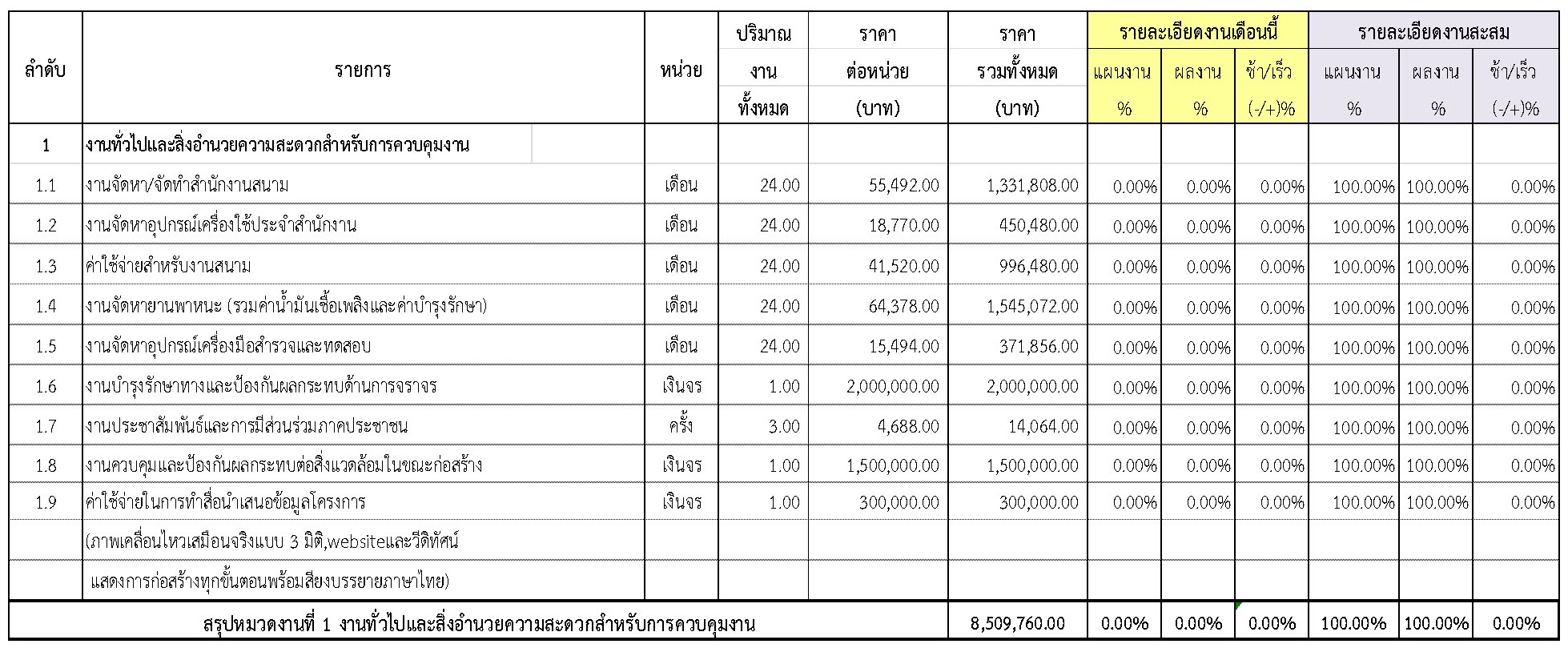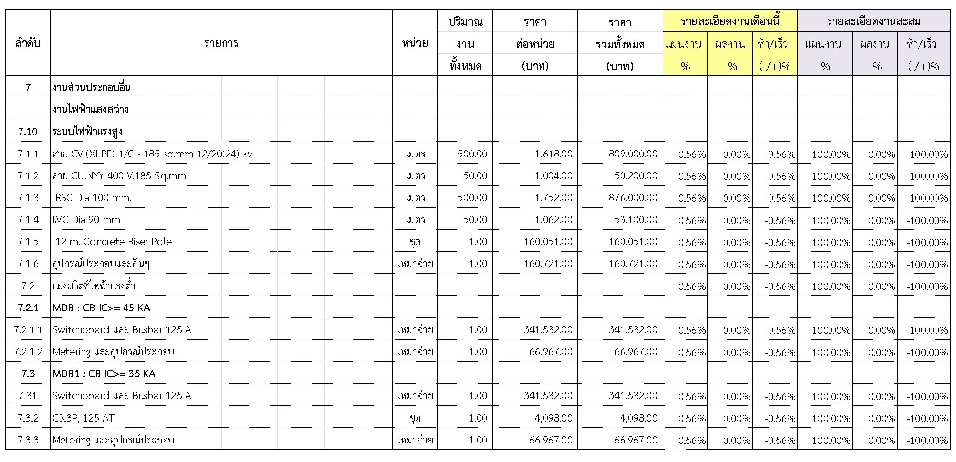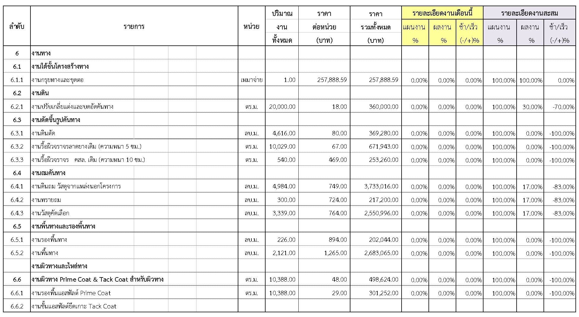 2.2 ความก้าวหน้าของงานก่อสร้างแยกตามรายการ