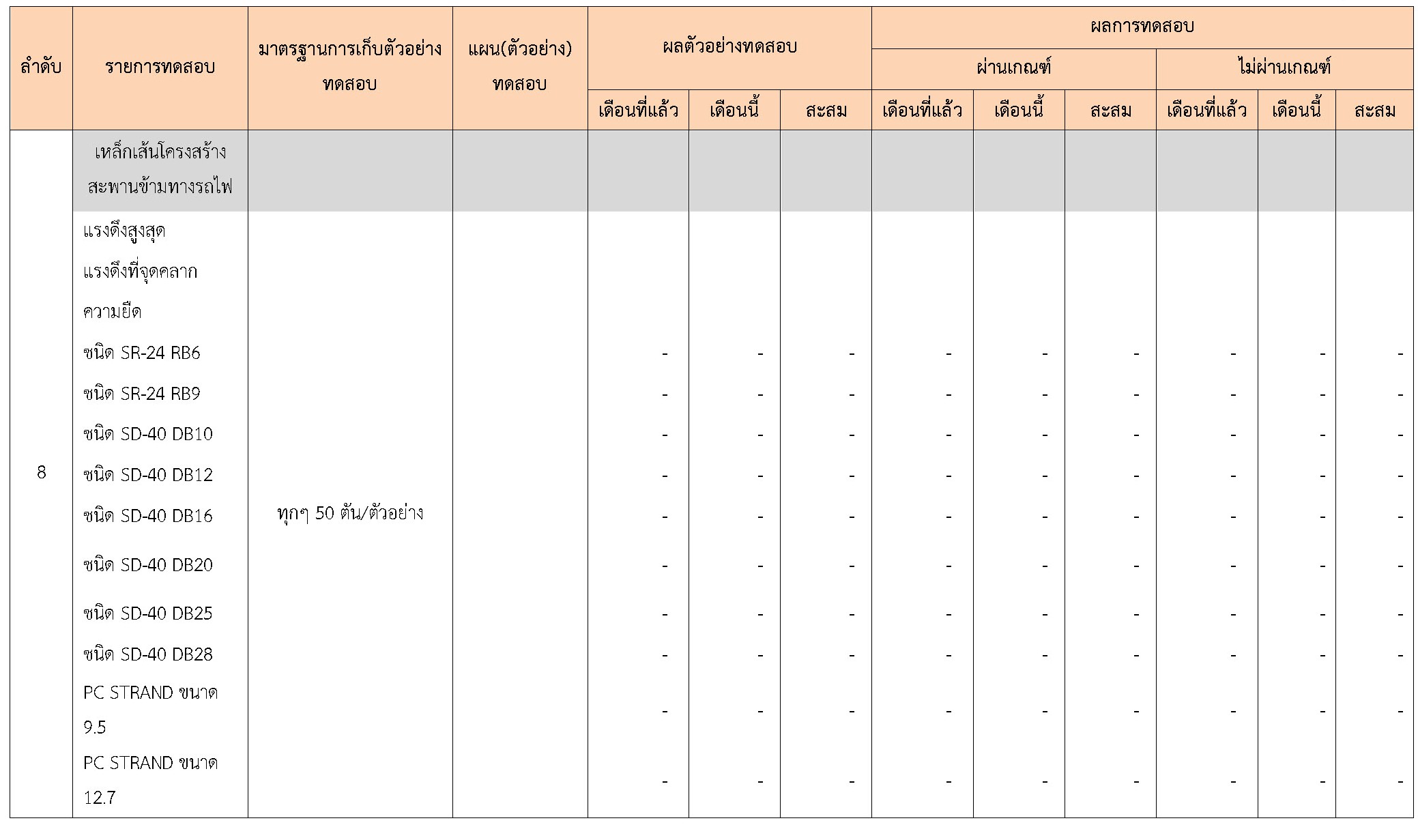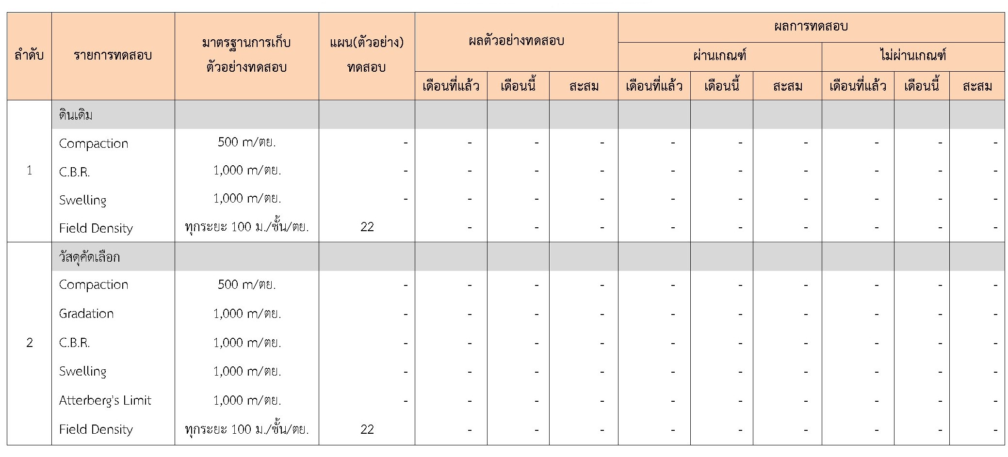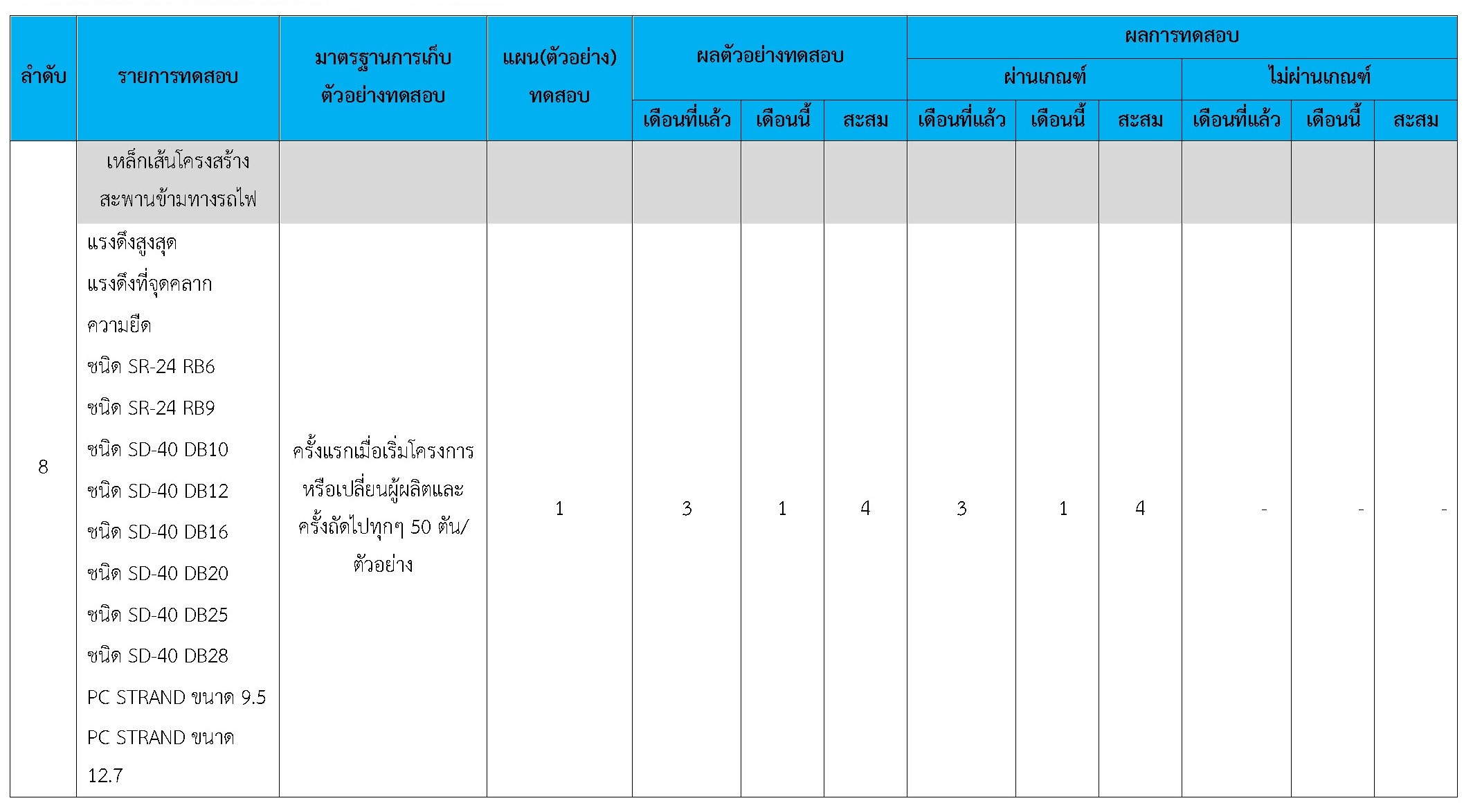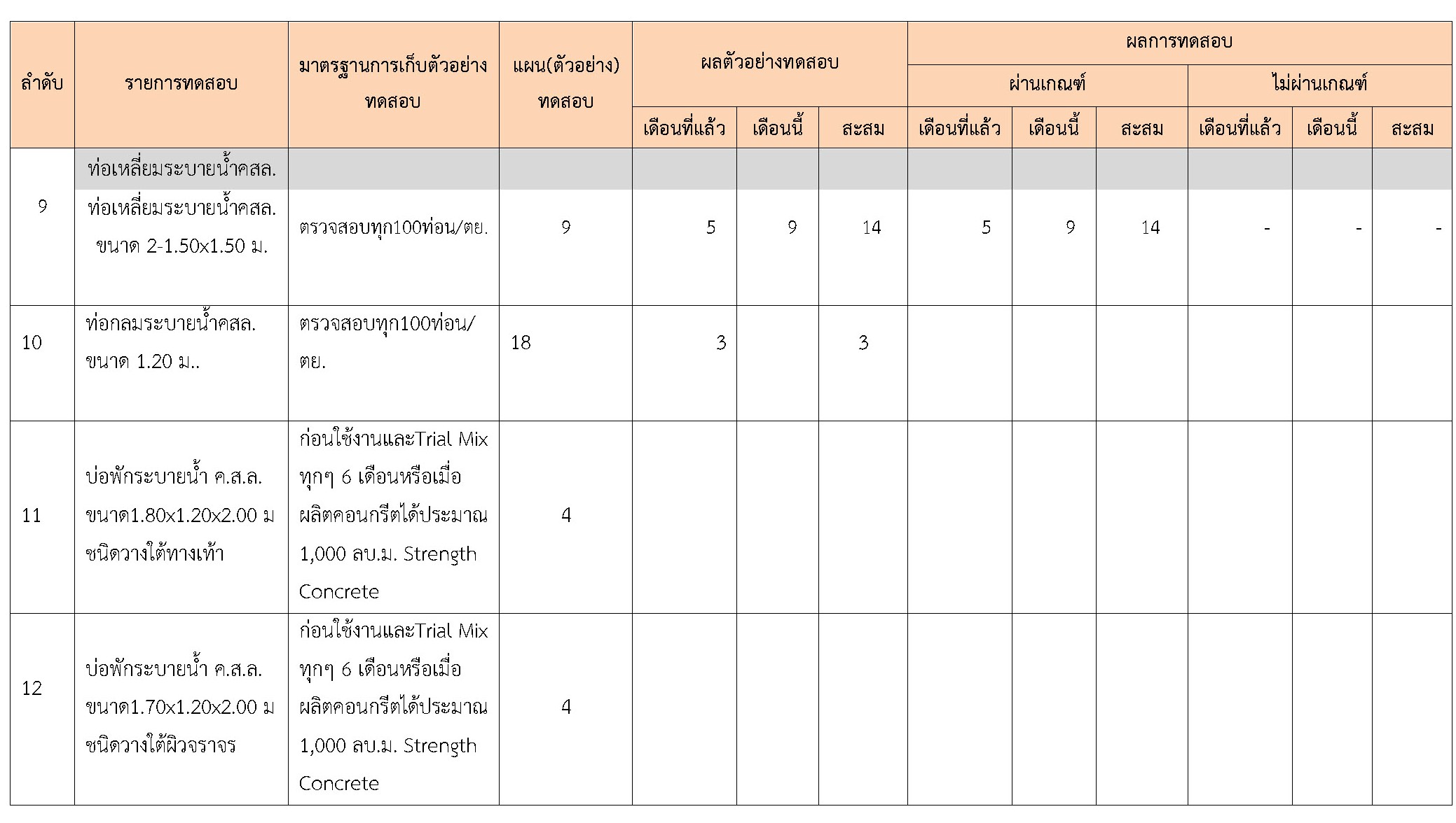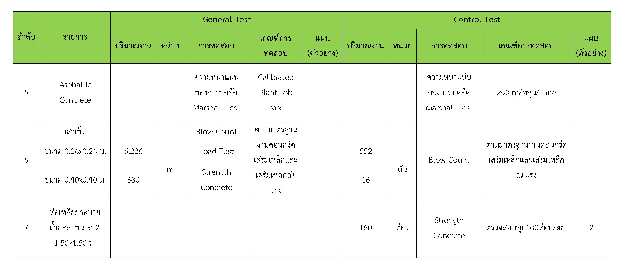 ในระหว่างวันที่ 1-30 กันยายน 2561ผู้ว่าจ้างได้เสนอหนังสือขออนุมัติใช้วัสดุถึงที่ปรึกษา โดยที่ปรึกษาได้ตรวจสอบวัสดุดังกล่าวมีผลทดสอบดังตาราง