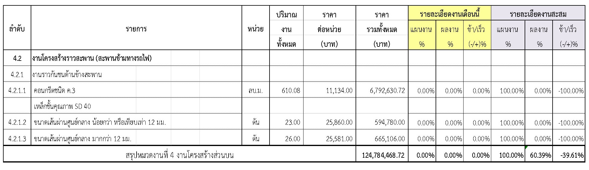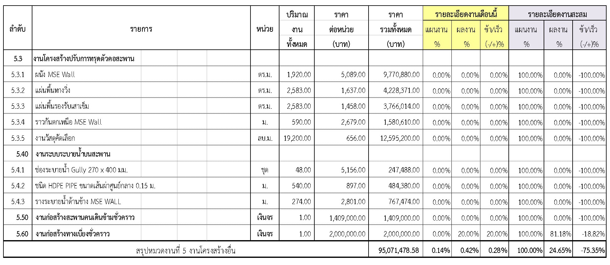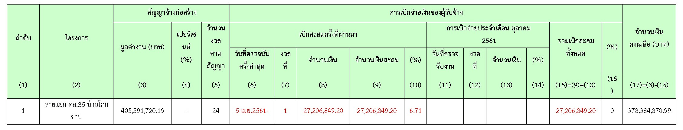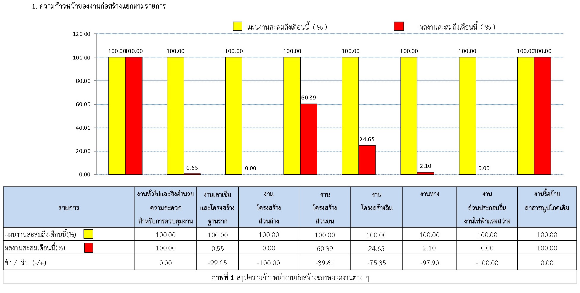 ในเดือน ตุลาคม 2561มีความก้าวหน้าของงานก่อสร้างที่สามารถตรวจรับงานได้ ดังสรุปในตารางที่ 2.3-1