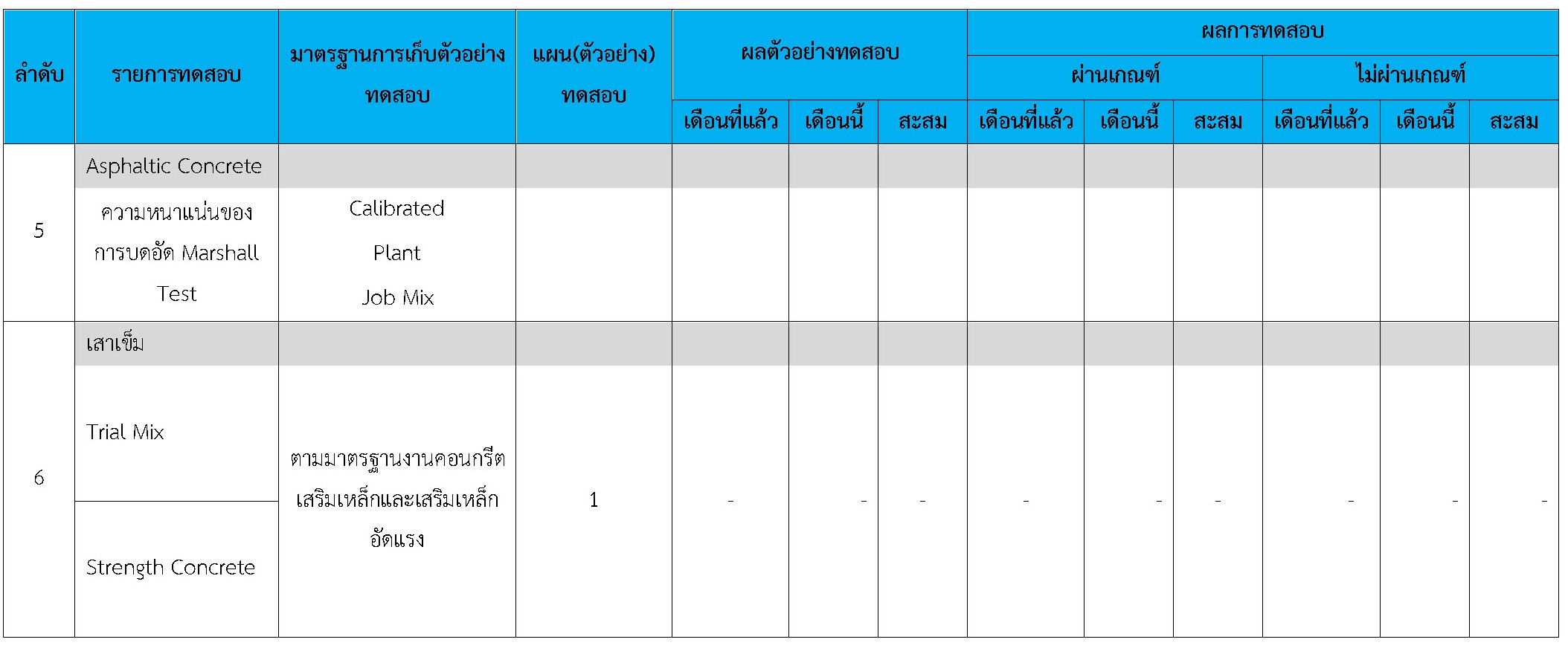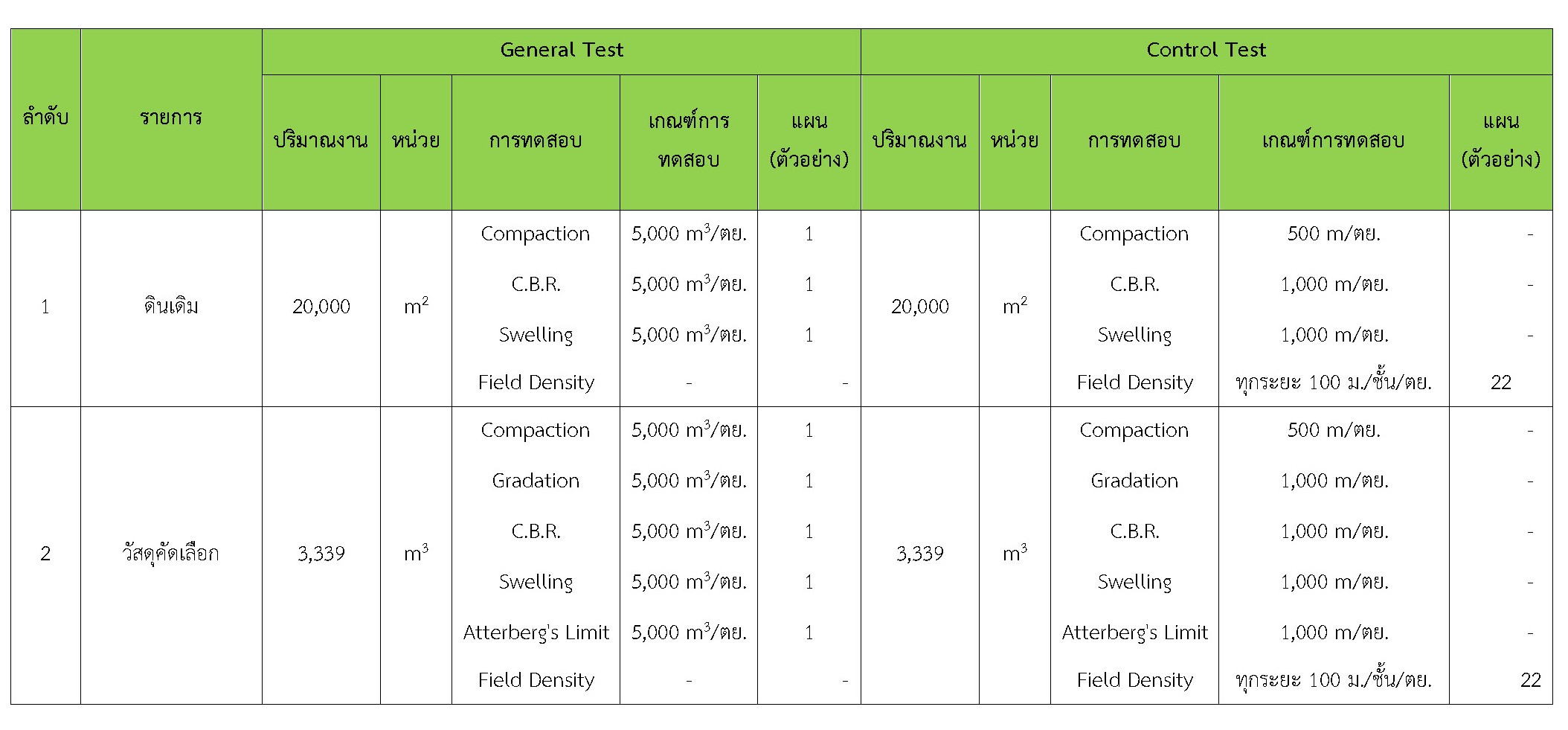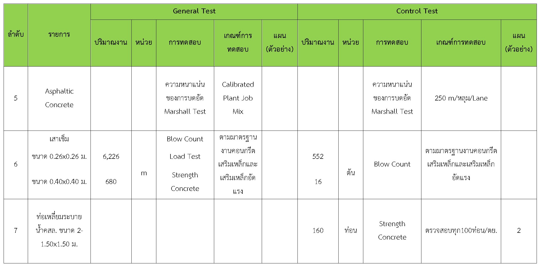 ในระหว่างวันที่ 1- 30 ตุลาคม 2561ผู้ว่าจ้างได้เสนอหนังสือขออนุมัติใช้วัสดุถึงที่ปรึกษา โดยที่ปรึกษาได้ตรวจสอบวัสดุดังกล่าวมีผลทดสอบดังตาราง
