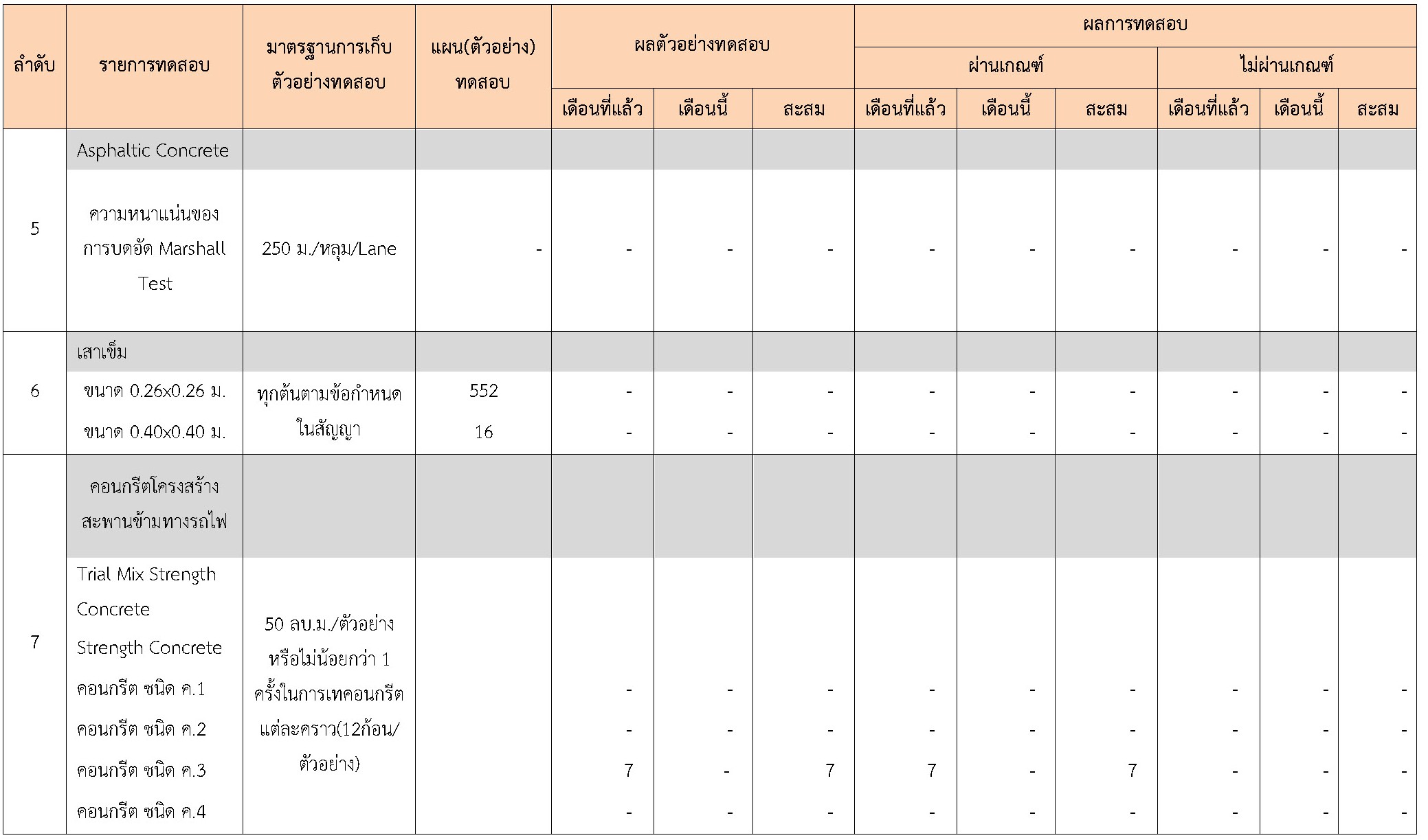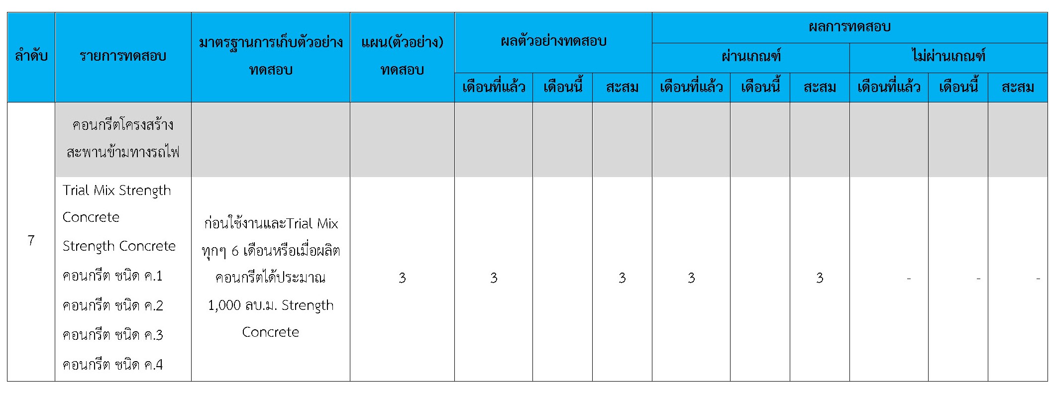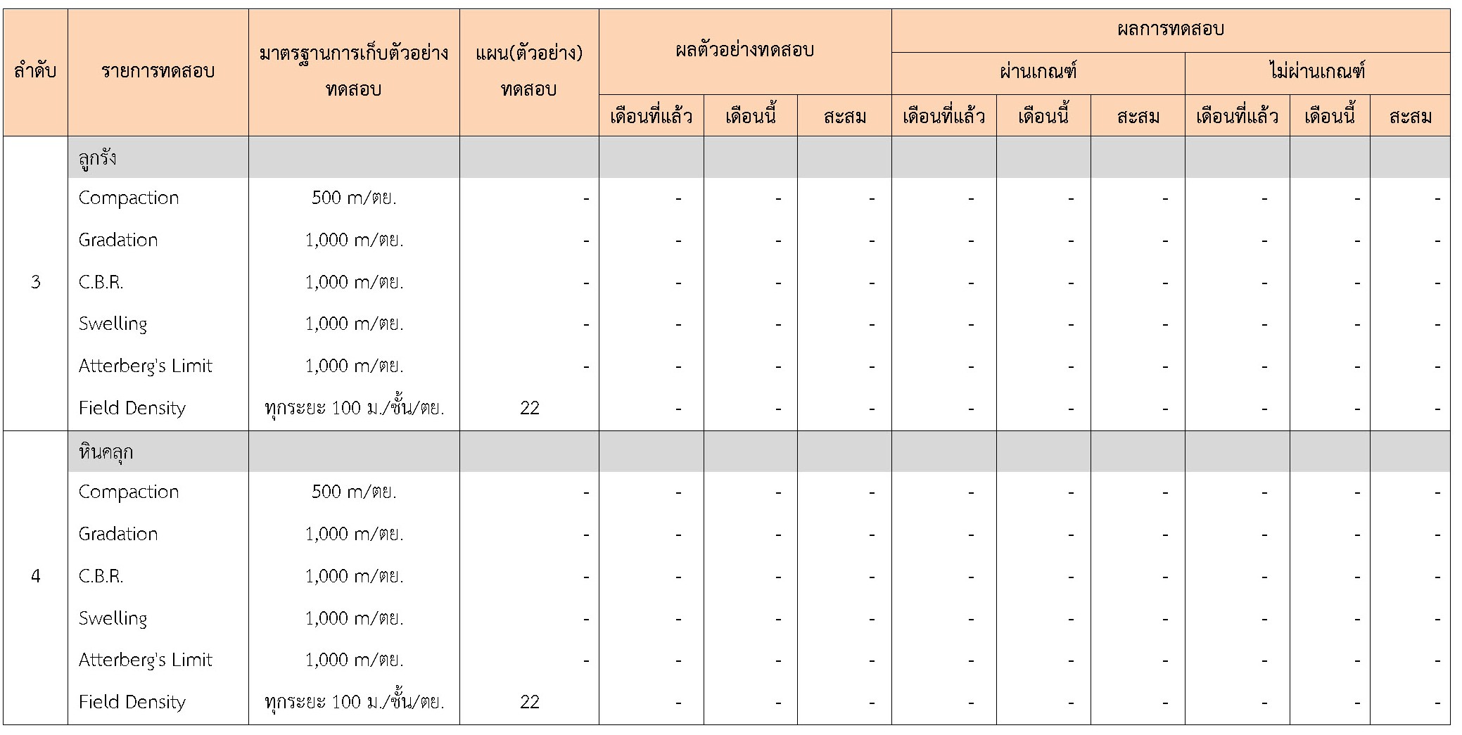 ในระหว่างวันที่ 1- 30 ตุลาคม 2561ผู้ว่าจ้างได้เสนอหนังสือขออนุมัติใช้วัสดุถึงที่ปรึกษา โดยที่ปรึกษาได้ตรวจสอบวัสดุดังกล่าวมีผลทดสอบดังตาราง