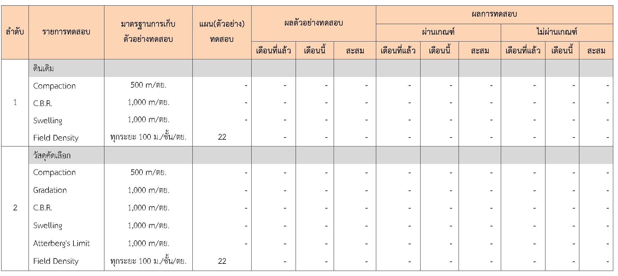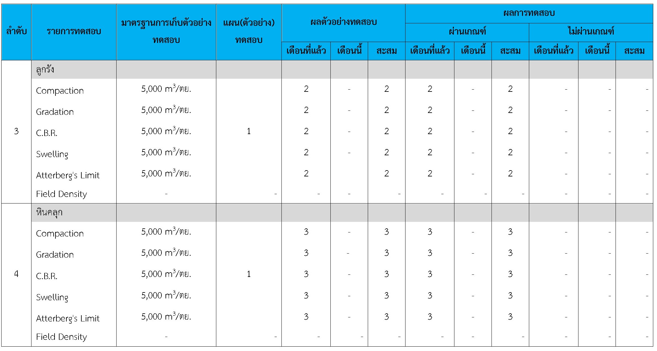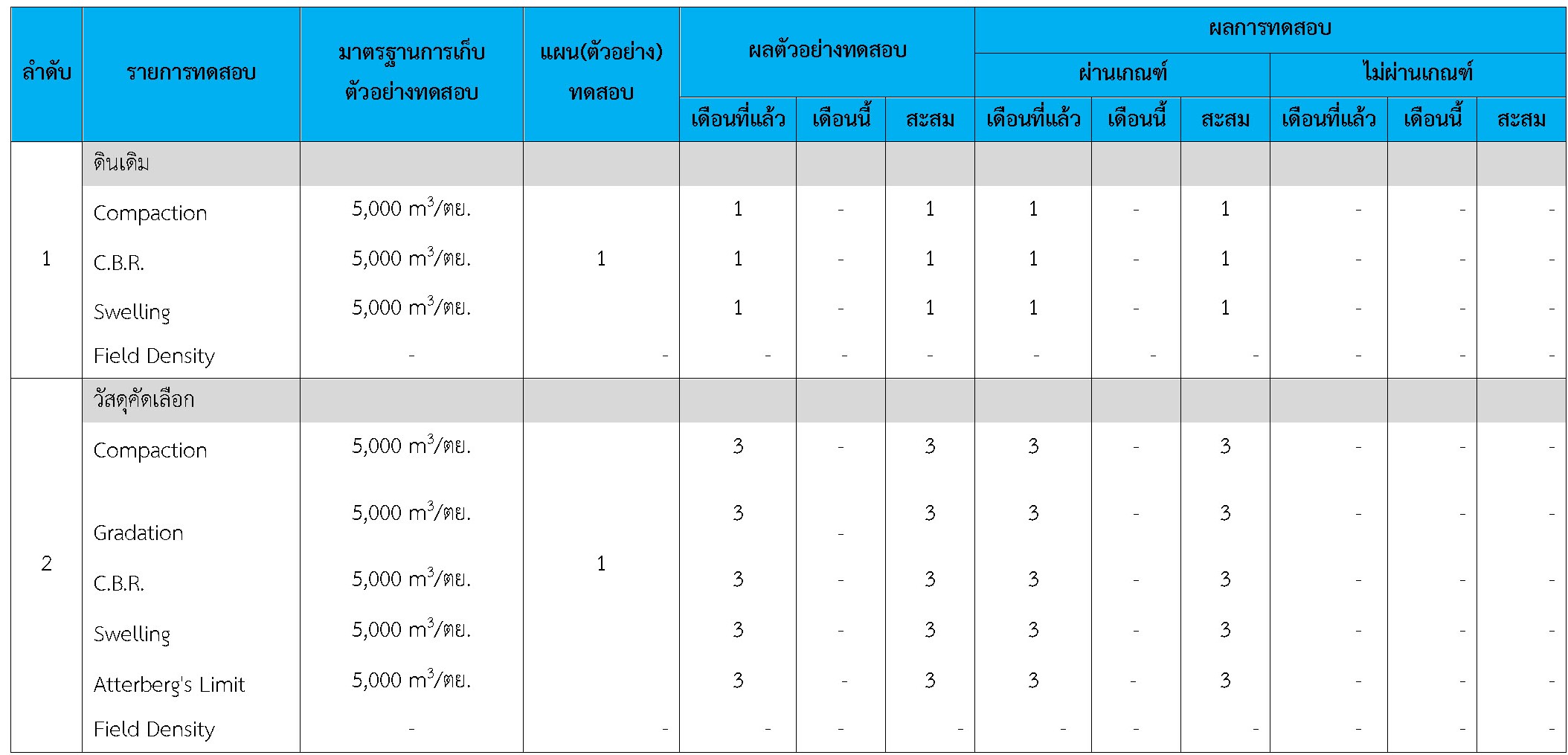 ในระหว่างวันที่ 1-30ตุลาคม 2561ผู้ว่าจ้างได้เสนอหนังสือขออนุมัติใช้วัสดุถึงที่ปรึกษา โดยที่ปรึกษาได้ตรวจสอบวัสดุดังกล่าวมีผลทดสอบดังตาราง