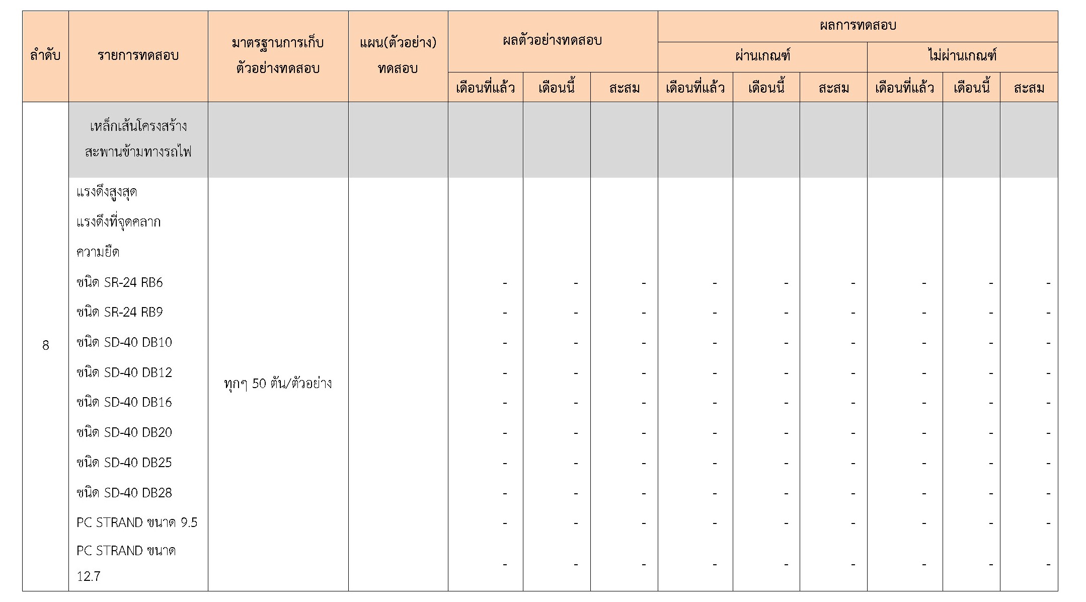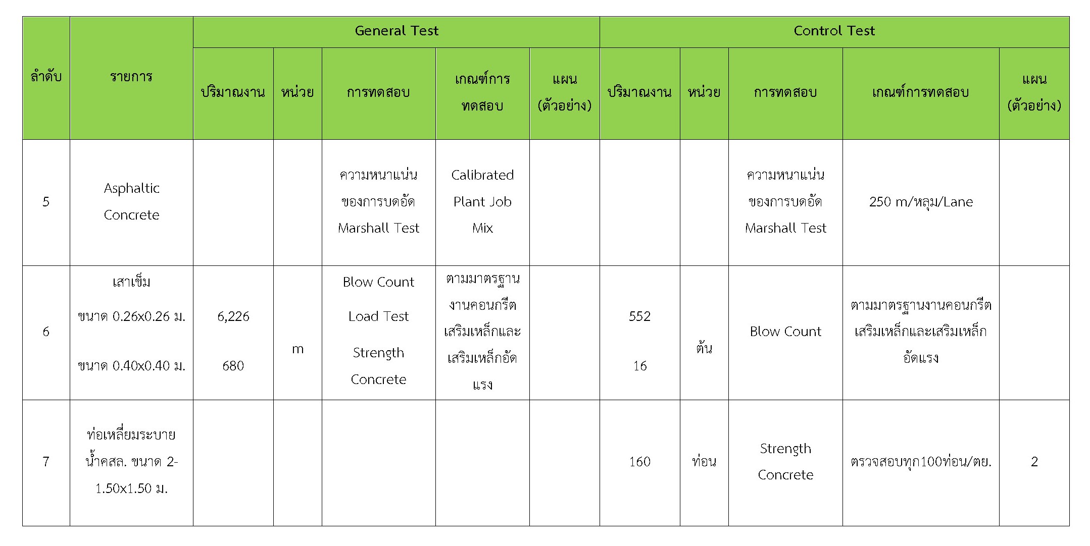 โครงการก่อสร้างสะพานข้ามทางรถไฟ จุดตัดทางรถไฟกับถนนสาย สค. 2032 แยก ทล.35– บ้านโคกขาม อ.เมือง จ.สมุทรสาคร ผลการทดสอบวัสดุ