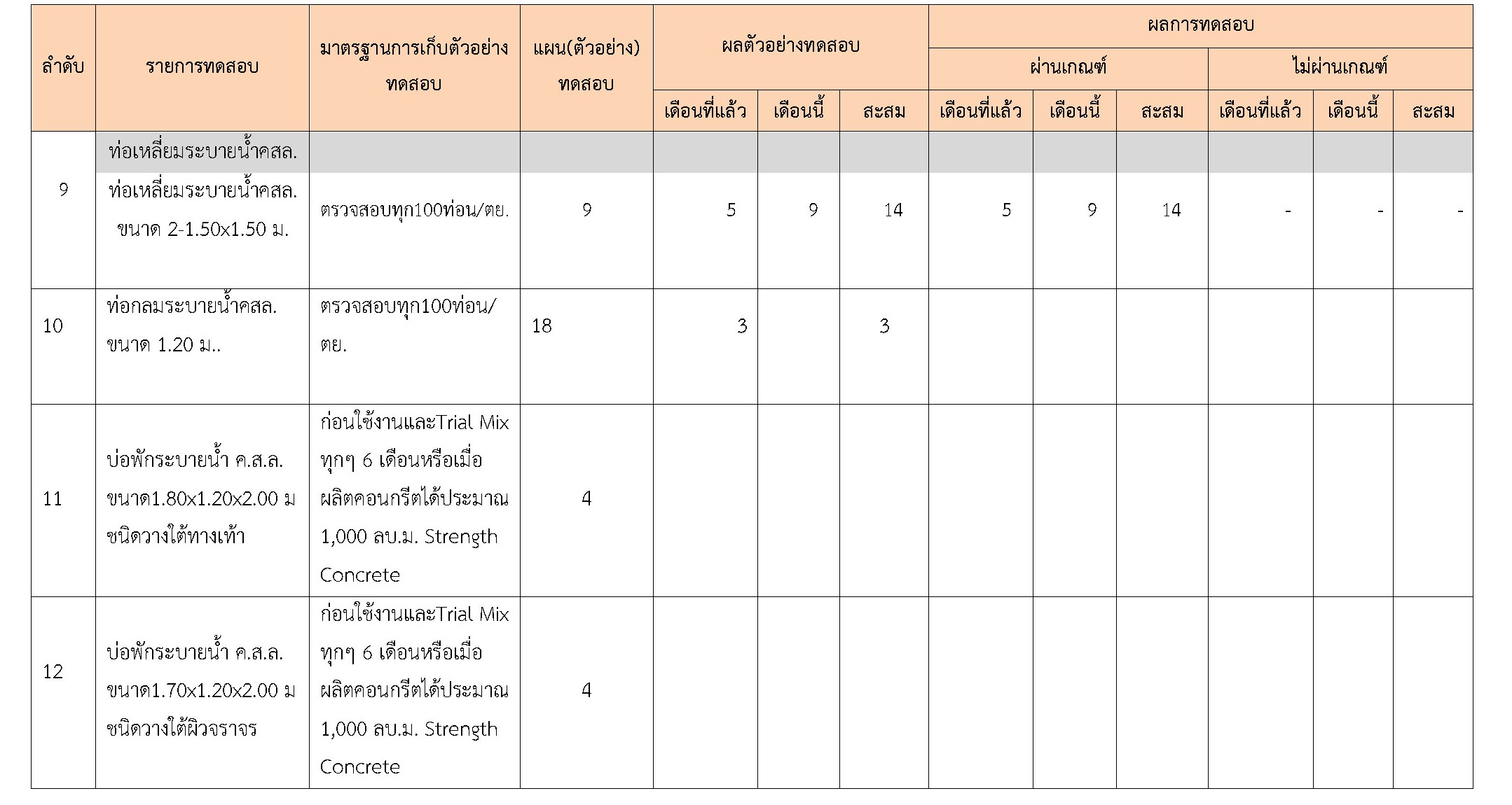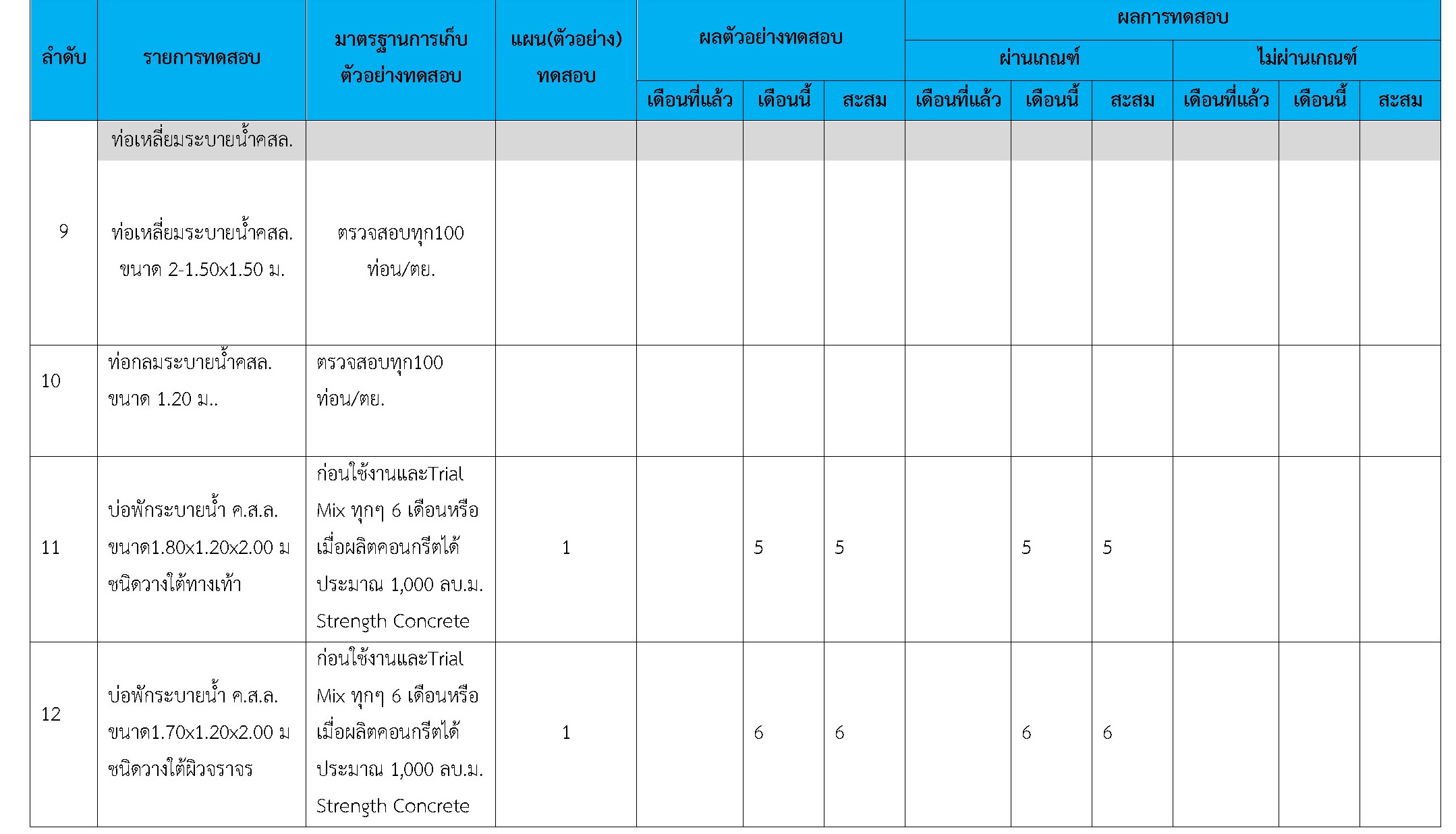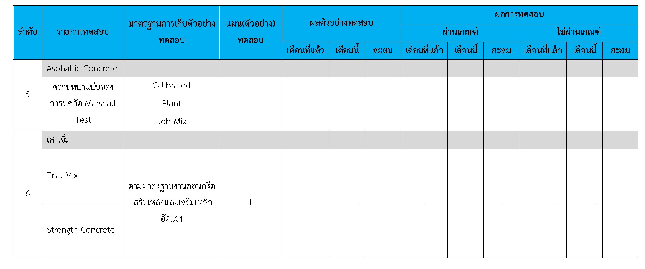 ในระหว่างวันที่ 1- 30 พฤศจิกายน 2561 ผู้ว่าจ้างได้เสนอหนังสือขออนุมัติใช้วัสดุถึงที่ปรึกษา โดยที่ปรึกษาได้ตรวจสอบวัสดุดังกล่าวมีผลทดสอบดังตาราง