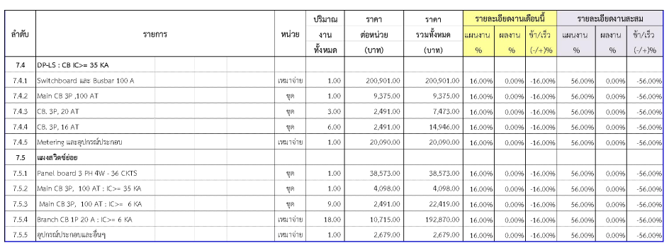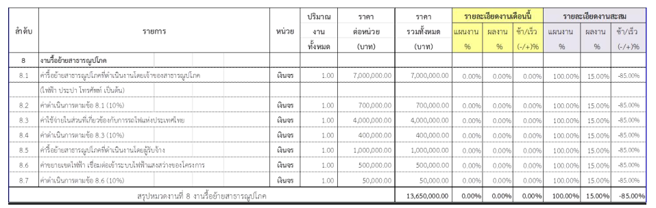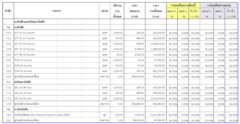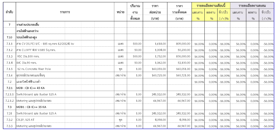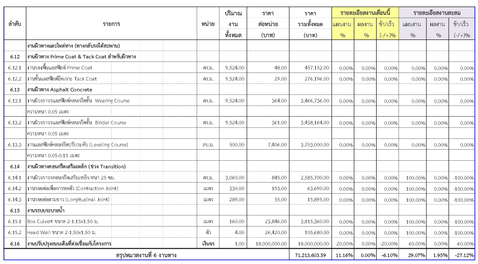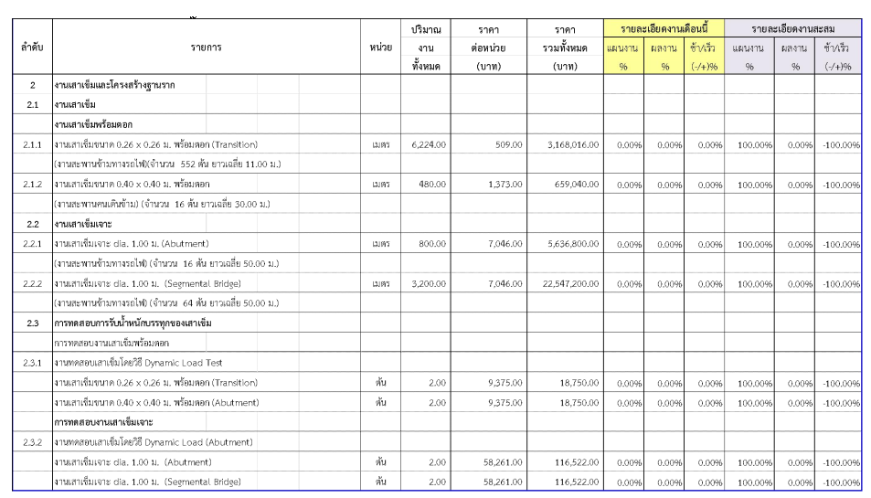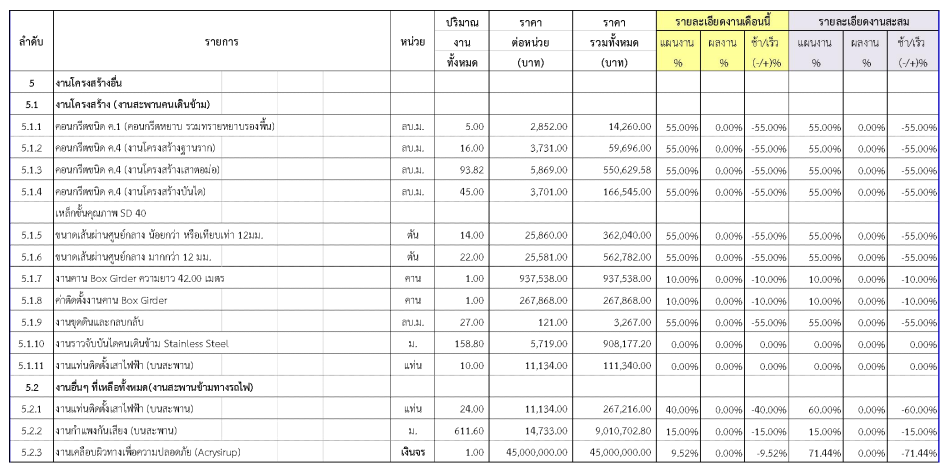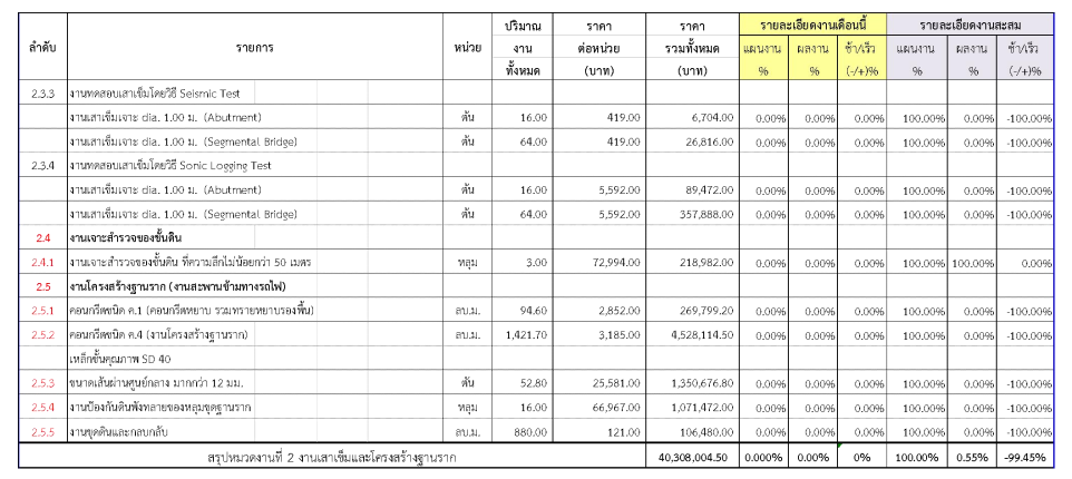 2.2ความก้าวหน้าของงานก่อสร้างแยกตามรายการ