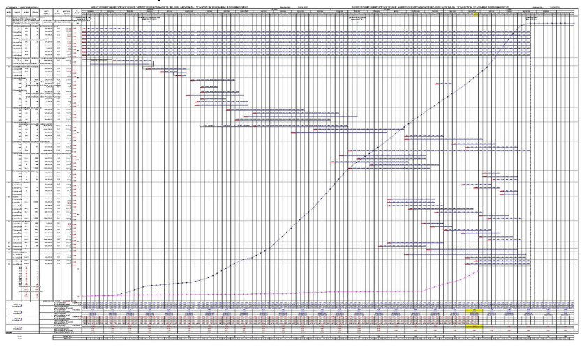 เนื่องจากในช่วงเดือนที่ 33 ของโครงการ ผู้รับจ้างกำลังเคลียร์สิ่งปลูกสร้างหน้างานในสนาม และได้จัดทำแผนงานของกิจกรรมก่อสร้างต่างๆ ในกรอบเวลาของสัญญา ให้ทางที่ปรึกษาพิจารณา ดังรูปที่ 2.2-1