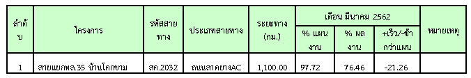 ความก้าวหน้าในช่วงเดือนมีนาคม 2562 ( 21.26 %) ผลงานความก้าวหน้าแสดงไว้ในตารางที่ 3.1-1 ดังนี้