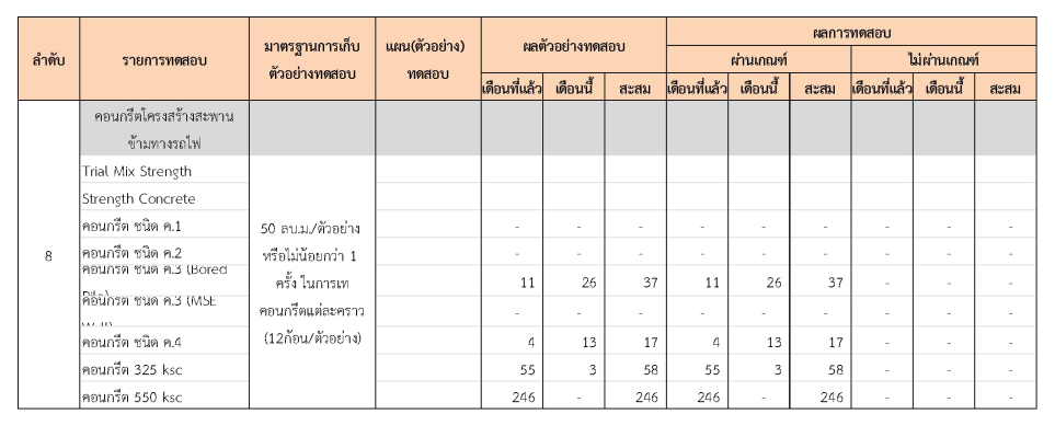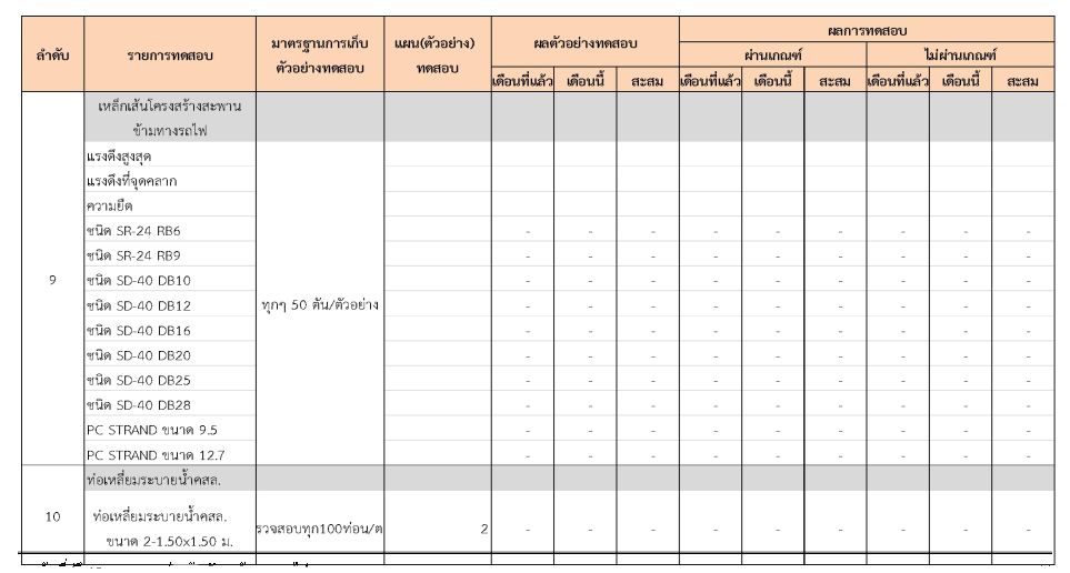 ในระหว่างวันที่ 1-31 มีนาคม 2562 ผู้ว่าจ้างได้เสนอหนังสือขออนุมัติใช้วัสดุถึงที่ปรึกษา โดยที่ปรึกษาได้ตรวจสอบวัสดุดังกล่าวมีผลทดสอบดังตาราง