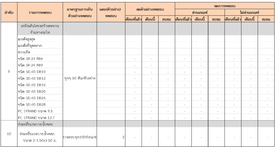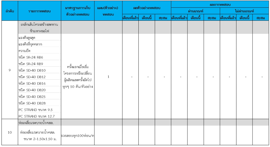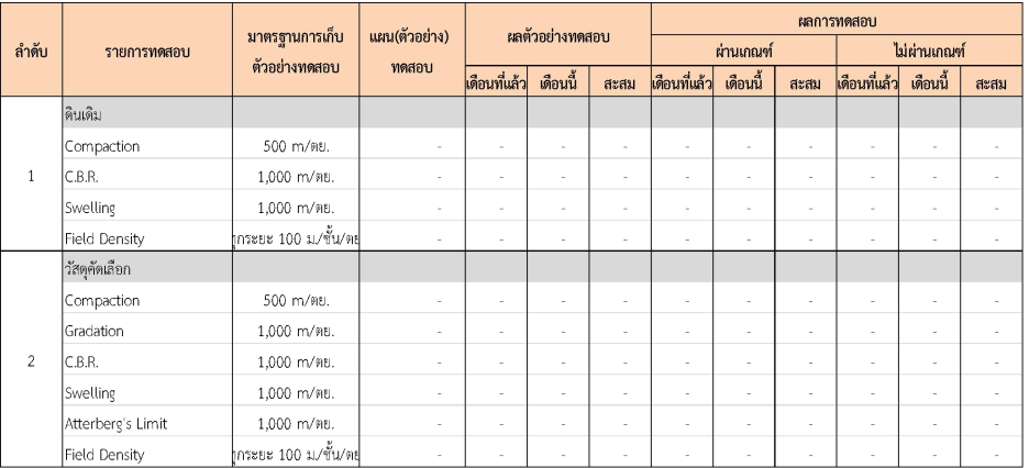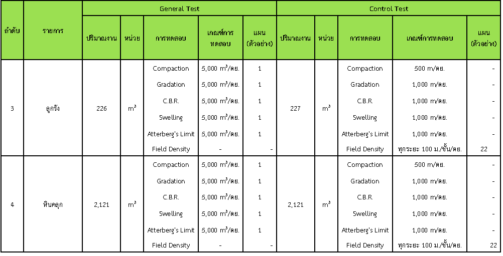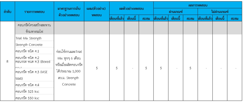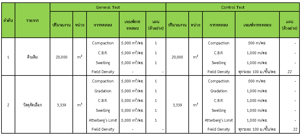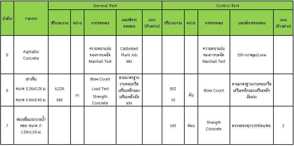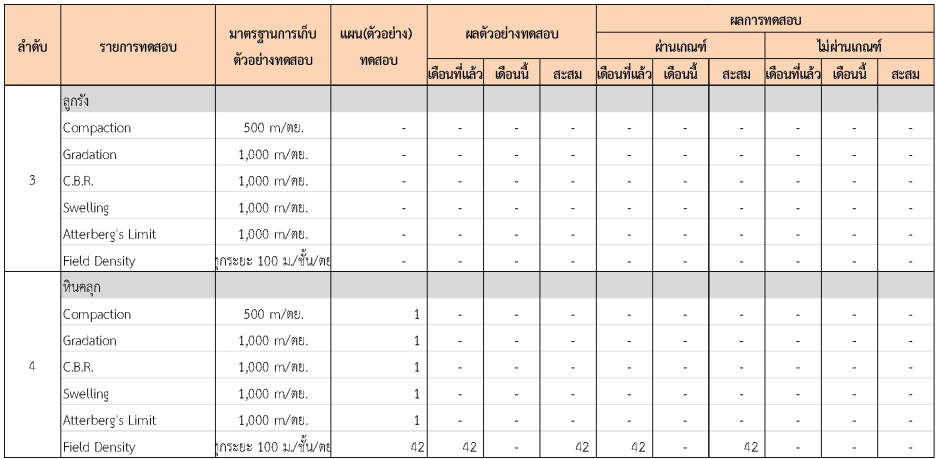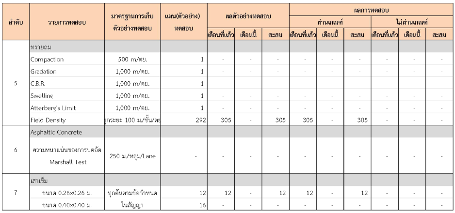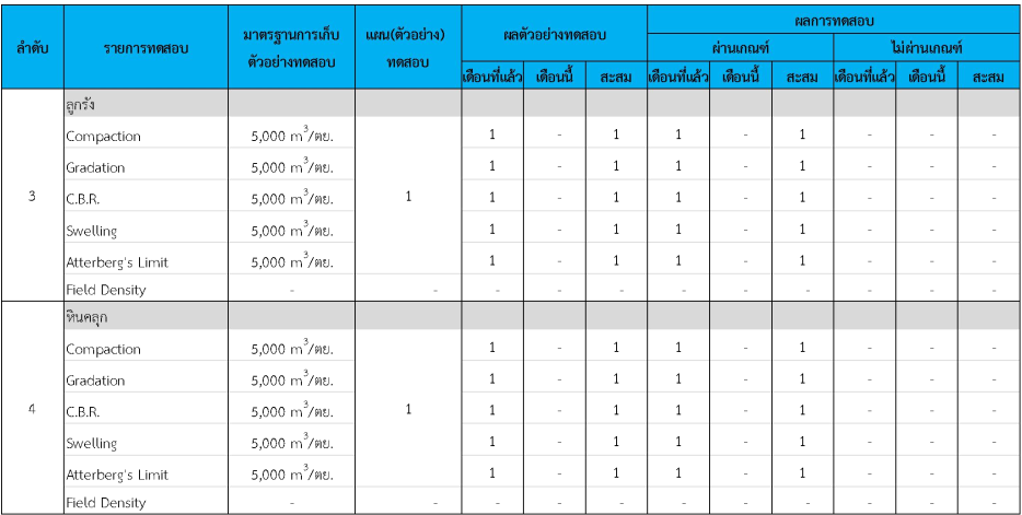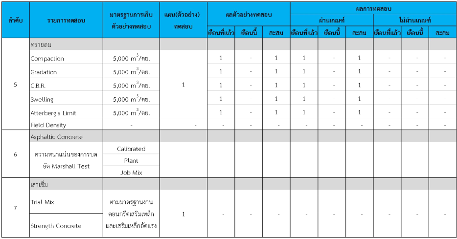 ในระหว่างวันที่ 1- 31 กรกฏาคม 2562 ผู้ว่าจ้างได้เสนอหนังสือขออนุมัติใช้วัสดุถึงที่ปรึกษา โดยที่ปรึกษาได้ตรวจสอบวัสดุดังกล่าวมีผลทดสอบดังตาราง
