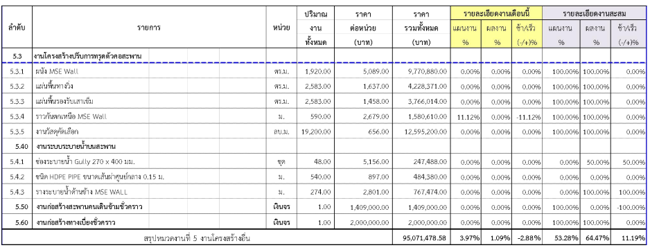 ตารางที่ 2.1-1 สรุปผลงานความก้าวหน้าของงานก่อสร้าง