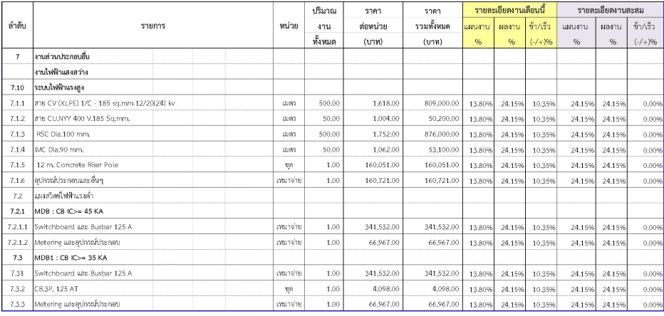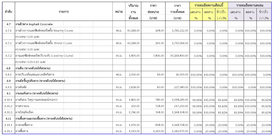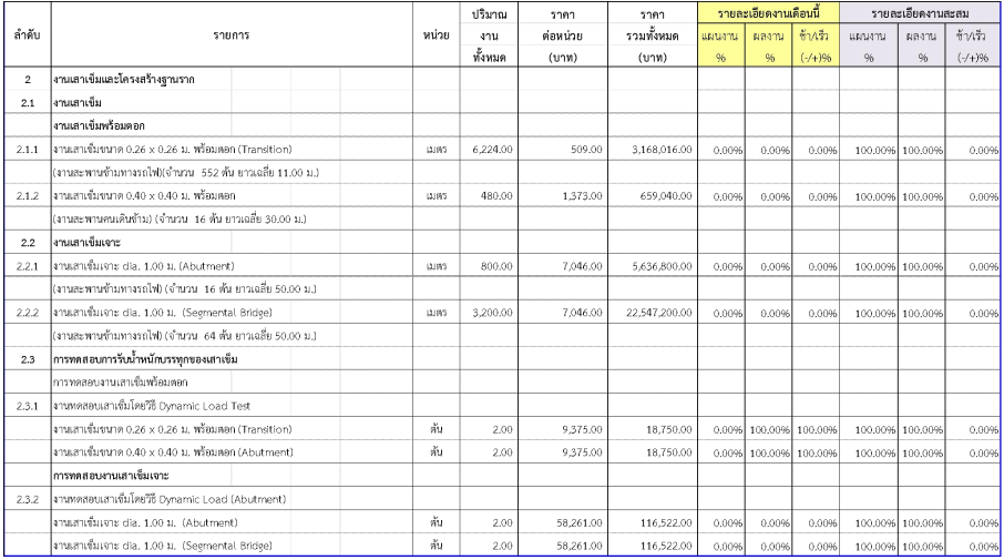 2.2ความก้าวหน้าของงานก่อสร้างแยกตามรายการ
