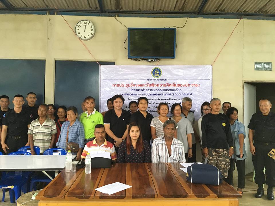 การประชุมการรับฟังความคิดเห็นของประชาชน โครงการสำรวจออกแบบโครงข่ายสะพาน 2560 กลุ่ม 4 สะพานข้ามคลองเครือหวาย ม.11 บ.สันติพัฒนา ต.โป่งน้ำร้อน อ.โป่งน้ำร้อน จ.จันทบุรี วันจันทร์ ที่ 8 มิถุนายน พ.ศ.2560 เวลา 10.00 น.