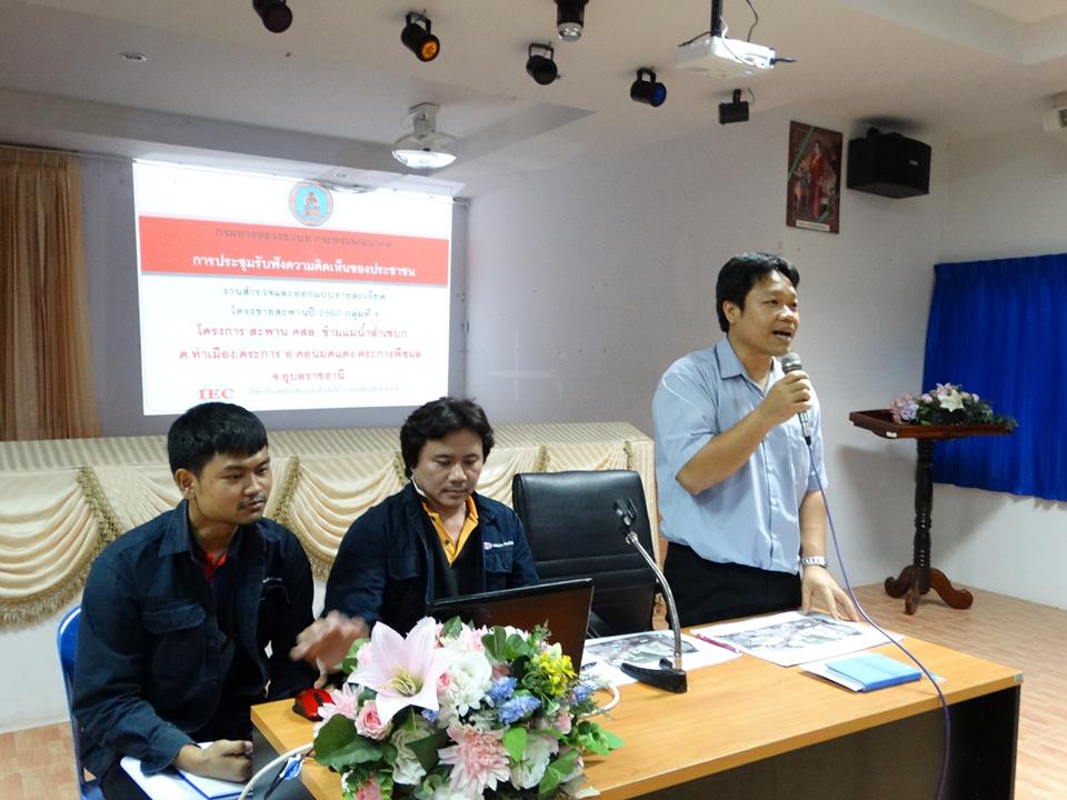การประชุมการรับฟังความคิดเห็นของประชาชน โครงการสำรวจออกแบบโครงข่ายสะพาน 2560 กลุ่ม 4 สะพานข้ามแม่น้ำลำเซบก บ.ท่าเมือง ม.1 - บ.สะพือ ม.6 ต.ท่าเมือง/สะพือ อ.ดอนมดแดง/ตระการพืชผล จ.อุบลราชธานี วันจันทร์ ที่ 5 มิถุนายน พ.ศ.2560 เวลา 09.00 น.