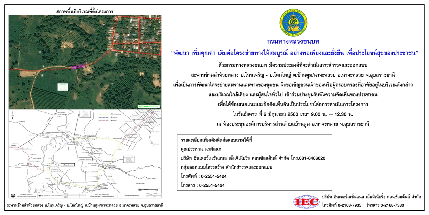 สะพานข้ามลำห้วยหลวงเป็นสะพานข้ามระหว่าง บ.โนนเจริญ - บ.โคกใหญ่ ต.บ้านตูม/นาจะหลวย อ.นาจะหลวย จ.อุบลราชธานี